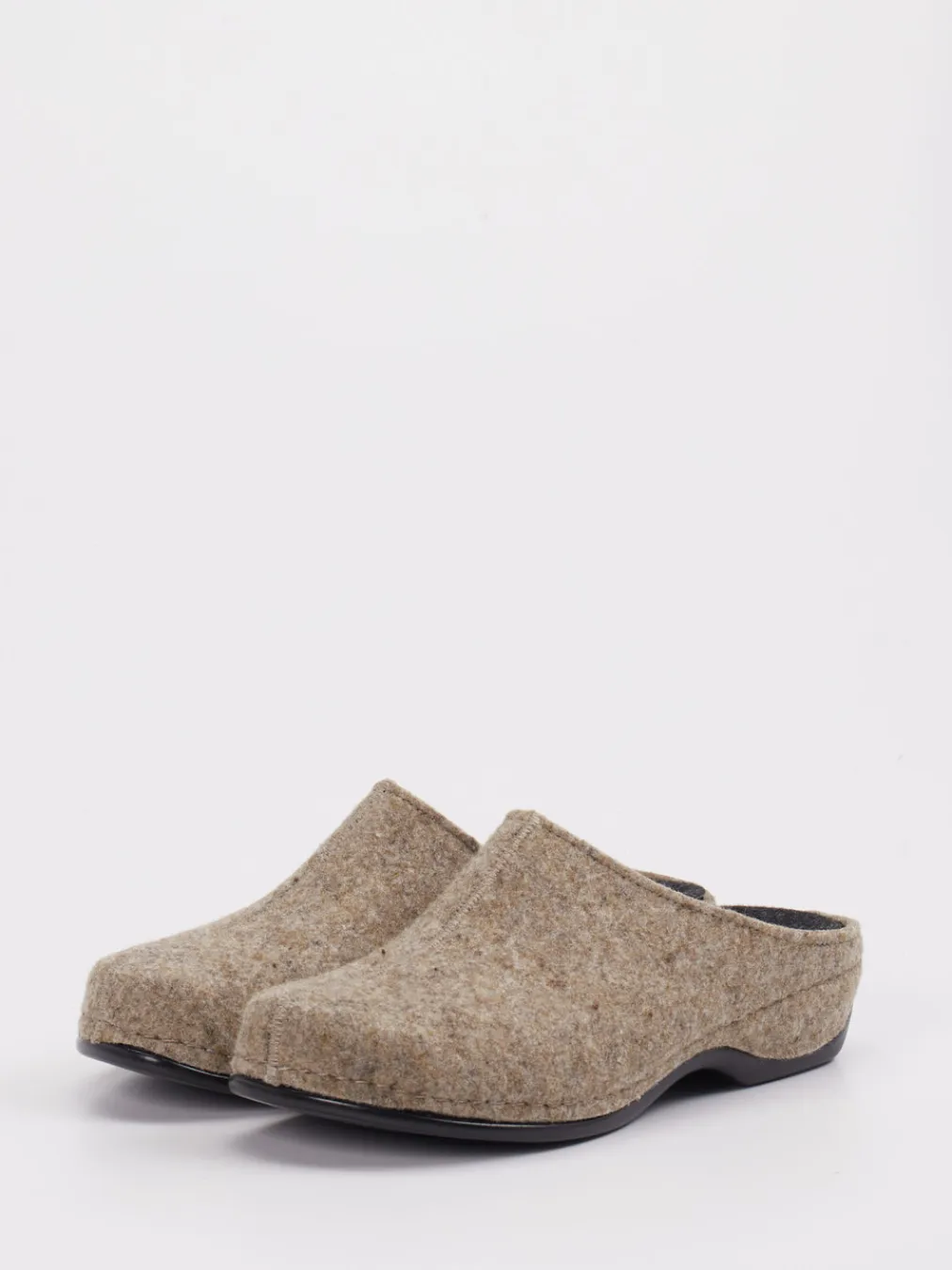 Der ergonomisch geformte Filzclog bietet durch den weich-melierten Wollfilz optimalen Komfort und fügt sich stilvoll in minimalistische Wohnkonzepte ein.