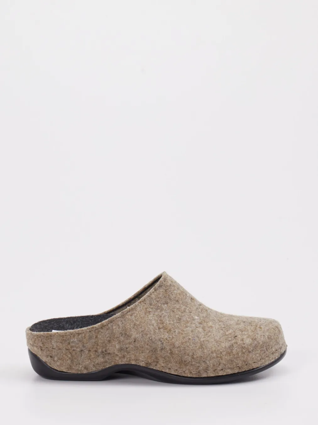 Warmer Komfort für entspannte Stunden.Berkemann präsentiert komfortable Filzclogs für den Homewear-Bereich. Ideal für gemütliche Abende daheim oder entspannte Tage im Alltag: Diese bequemen Hausschuhe bestehen aus atmungsaktivem Wollfilz mit weich-melierter Oberfläche. Das beigebraune Design mit abgestimmten Nähten unterstreicht den reduzierten Look, während die offene Ferse und die ergonomische Gummisohle Bewegungsfreiheit und Halt bieten. Die Clog-Form ist inspiriert vom skandinavischen Komfortstil und entspricht aktuellen Naturmaterial-Trends. Mit sorgfältiger Verarbeitung und funktionalem Design überzeugt Berkemann durch langlebigen Wohlfühlkomfort.
