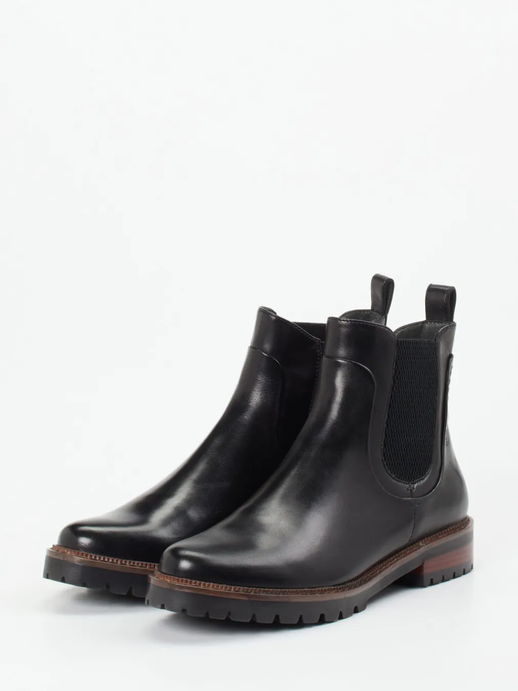 Minimalismus trifft Heritage-Charakter.Die Marke Ginger & Glove präsentiert klassische Chelsea Boots für Damen. Ideal für kühle Herbsttage im Büro oder bei urbanen Spaziergängen: Die Stiefelette aus feinem Kalbleder zeigt sich in tiefem Schwarz mit glänzender Oberfläche und eleganter Silhouette. Ein seitlicher Elastikeinsatz ermöglicht bequemes Hineinschlüpfen, Zuglasche und die profilierte Gummisohle erhöhen Alltagstauglichkeit. Dezente Kontrastnähte und eine braune Zwischensohle verweisen auf handwerkliche Details im Heritage-Stil. Stylingtipp: Harmoniert mit Kaschmirmantel und Ledertasche in Cognac. Komfortabel und stilvoll – in Ginger & Glove Qualität.