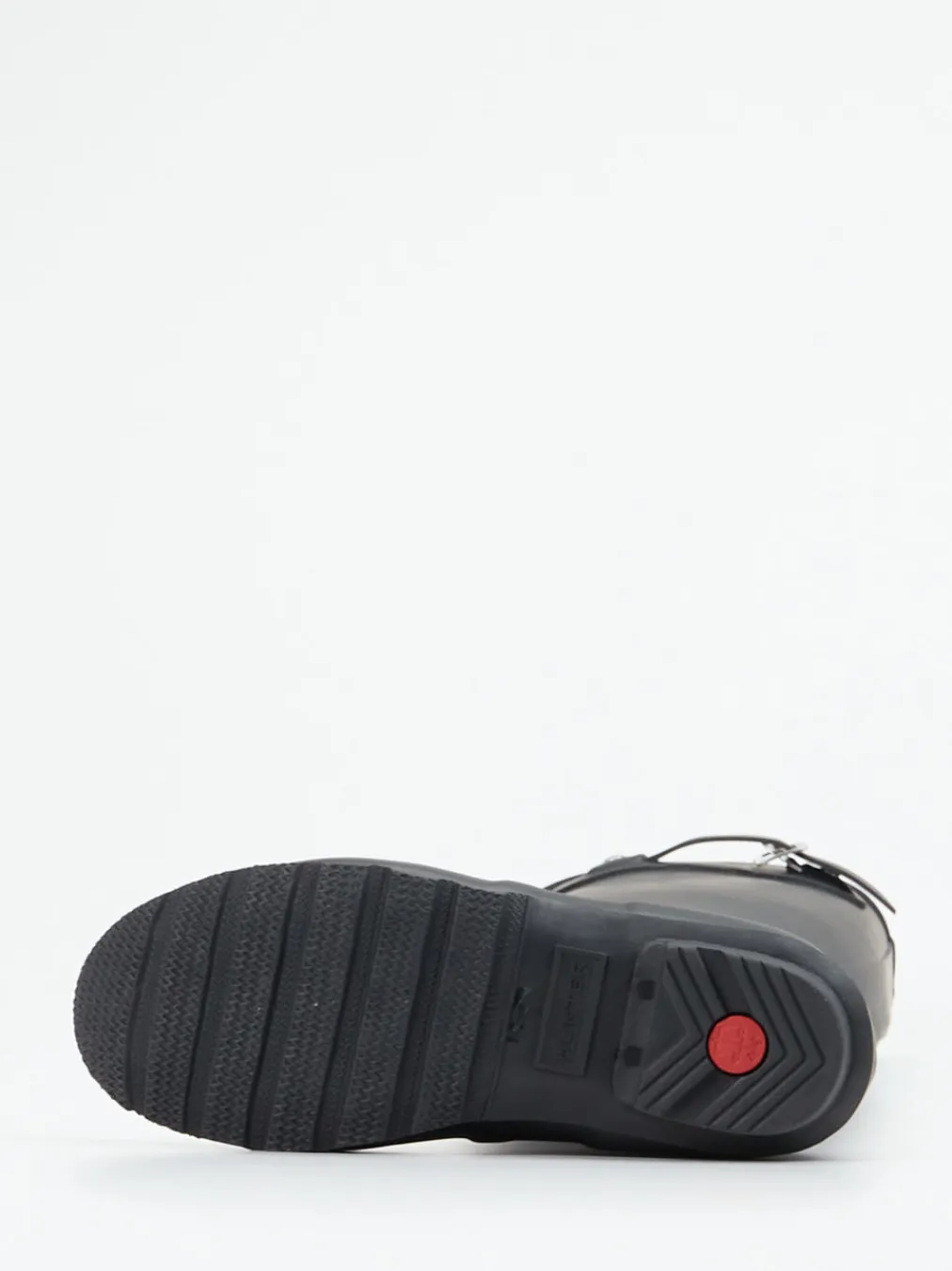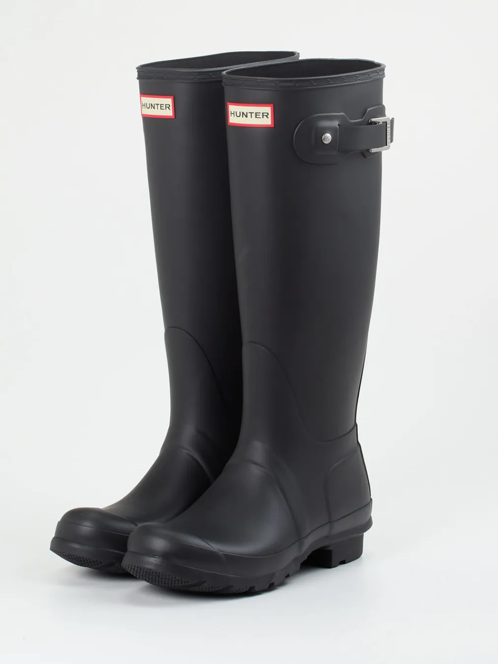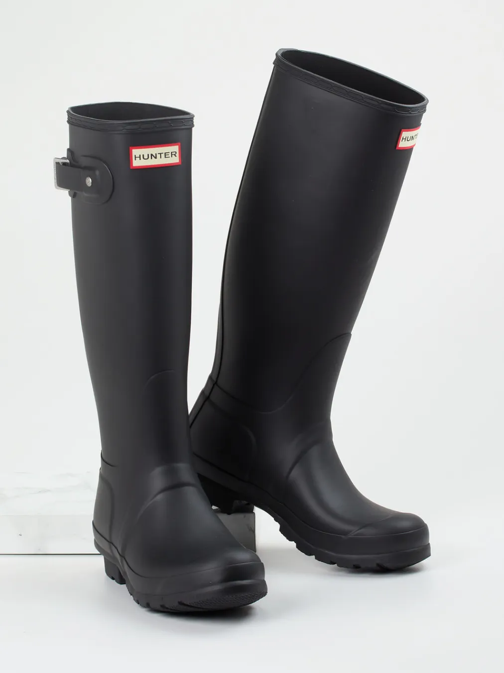 Der matte Synthetik-Gummistiefel von Hunter verbindet Funktionalität mit minimalistischem Design – ideal für urbane Regentage und Outdoor-Aktivitäten.