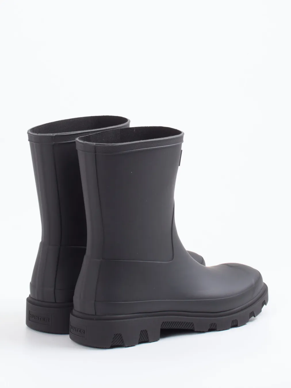 Dieser tiefschwarze Gummistiefel vereint robuste Funktion mit puristischem Design. Die breite Profilsohle sorgt für Stabilität bei Regenwetter – urban und zweckmäßig zugleich.