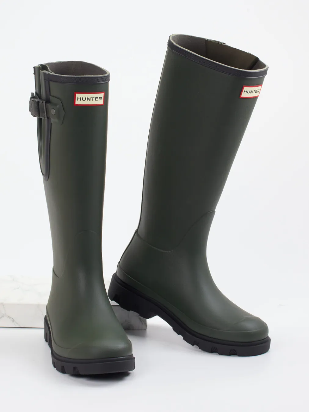 Robuste Alltagspartner mit Outdoor-DNA: Die kniehohen Gummistiefel von Hunter bieten rutschfeste Trittsicherheit und klassischen Utility-Charme.