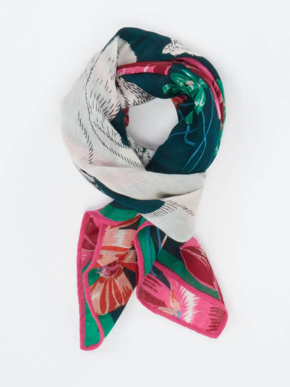 Künstlerisch illustriert und aus weicher Wolle gefertigt, verleiht dieses Tuch mit expressivem Farbspiel jedem Outfit eine ausdrucksstarke Note.