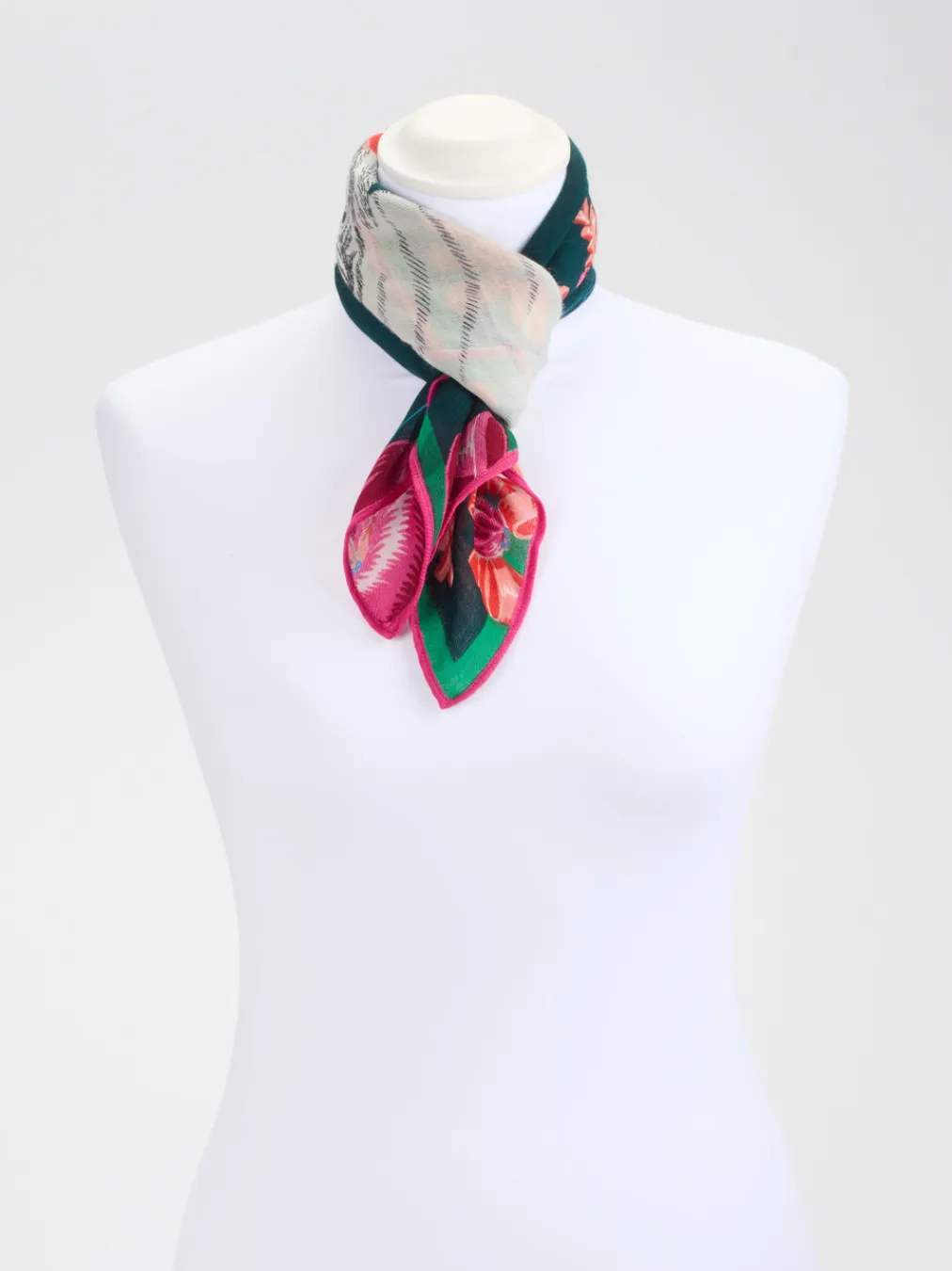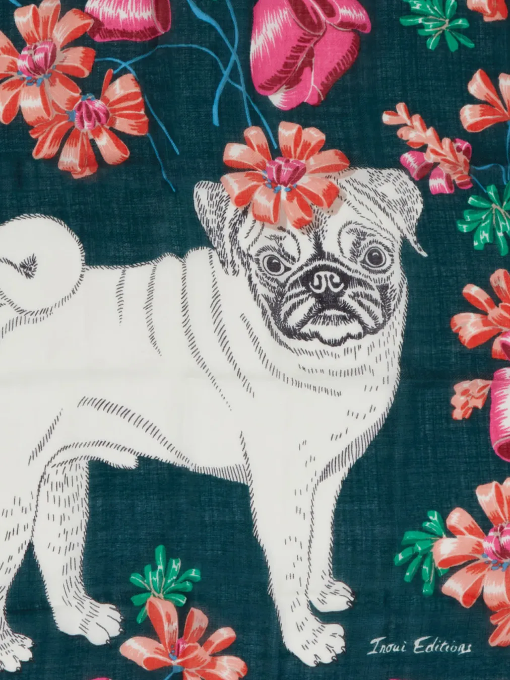 Dieses Tuch der Marke Inoui Editions aus reiner Wolle überzeugt mit seinem farbenfrohen Print und einer angenehm weichen Textur. Das Motiv zeigt einen Mops vor einem dunkelgrünen Hintergrund, flankiert von pinken und roten Blumen. Die feine Wollqualität schenkt wohlige Wärme und trägt sich zugleich leicht und anschmiegsam. Das großzügige Format bietet vielseitige Stylingmöglichkeiten – ob locker über die Schultern gelegt oder elegant um den Hals geschlungen. Das ausdrucksstarke Farbspiel setzt gezielte Akzente und verleiht dem Outfit eine lebendige Note. – Reine Wolle mit weicher, wärmender Haptik – Kräftige Farbgebung für markante Akzente – Großzügiges Format für vielseitige Tragevarianten – Ideal für kühlere Tage und elegante Layering-Looks – Maße: 70 x 70 cm Zur Pflege empfehlen wir eine professionelle Reinigung oder schonende Handwäsche mit Wollwaschmittel. So bleibt die Struktur der Fasern erhalten und das Tuch behält dauerhaft seine Form und Farbbrillanz.