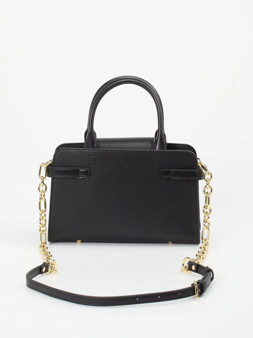 Schwarz und Gold zu kombinieren, damit kann man eigentlich nichts falsch machen. Aus beiden Farben aber ein wahres Kunstwerk zu kreieren, das schafft nur das New Yorker In-Label Steve Madden auf so unnachahmliche Weise. Der Korpus dieser attraktiven Umhängetasche ist vollständig aus strapazierfähigem, schwarzem Leder gefertigt, das durch seine feine Narbung Struktur erhält. Dieses edle Material nutzen die goldfarbenen, präzis platzierten Applikationen nun als Leinwand, auf der sie sich bestens in Szene setzen können. Da ist zum einen der schlichte Markenschriftzug, da sind aber auch die beiden benachbarten Schließen, über die die seitlichen Riemen ganz unkompliziert enger oder weiter gestellt werden können. So bleibt die Tasche auch dann in Form, wenn sie prall gefüllt ist. Ob Sie das Modell an seinen handschmeichelnden Henkeln tragen oder mithilfe der abnehmbaren Ketten-Ledergurt-Kombination über der Schulter, können Sie jeden Tag aufs Neue entscheiden. – Material: Leder – Farbe:…