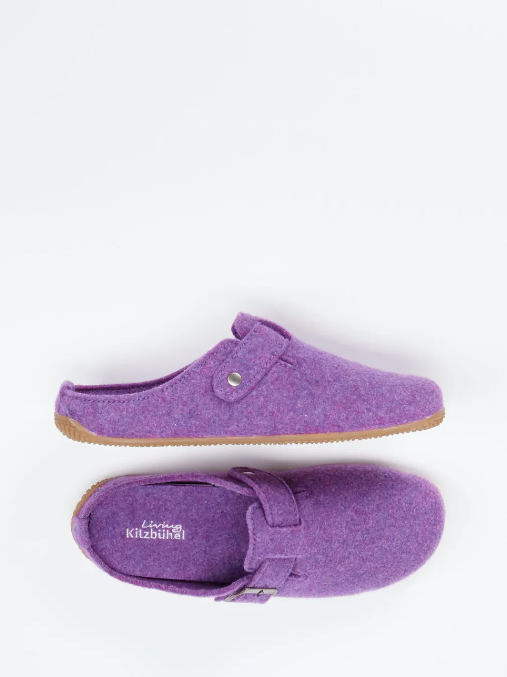 Stilsicher entspannen in jedem Raum.Living Kitzbühel präsentiert einen Hausschuh in klassischer Clog-Form. Ideal für entspannte Stunden auf kalten Böden: Der Pantoffel besteht aus hochwertiger Wolle, die sich filzig anfühlt und für eine ausgeglichene Temperatur sorgt. In sattem Fliederlila gehalten, kombiniert der Schuh alpine Tradition mit minimalistischer Aussage. Ein verstellbarer Riemen mit metallener Schnalle und Logo-Gravur ermöglicht individuelle Anpassung, während die profilierte Gummisohle sicheren, rutschhemmenden Halt gibt. Perfekt zu Loungewear oder schlichten Strickdesigns. Komfort und Zurückhaltung – typisch Living Kitzbühel.