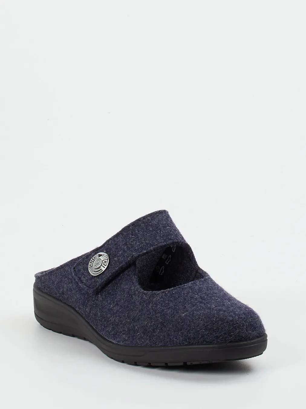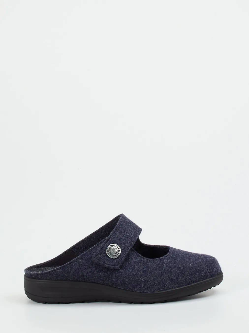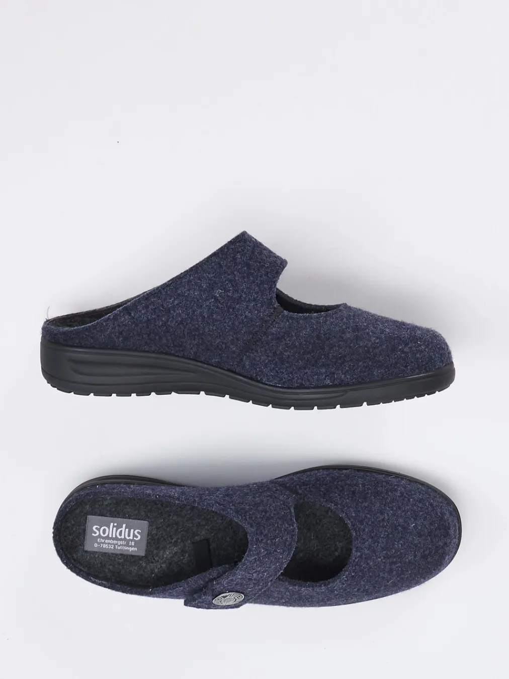 Wohltuender Komfort für den Alltag.Solidus präsentiert bequeme Damen-Hausschuhe in komfortabler Pantolettenform. Ideal für entspannte Stunden daheim: Das weiche, dunkelblau-melierte Filzmaterial sorgt für ein angenehmes Tragegefühl. Die ergonomisch geformte Luftpolstersohle bietet eine gelenkschonende Grundlage, während der individuell verstellbare Klettverschluss für optimalen Halt sorgt. Eine silberfarbene Zierschnalle setzt einen feinen Akzent auf dem funktionalen Design. Die hinten offene Silhouette betont die unkomplizierte Handhabung. Inspiriert vom Minimalismus und aktuellen Indoor-Trends passen sie ideal zu Hausanzug oder Wollsocken. Mit hochwertiger Verarbeitung und ausgewogenem Komfort – typisch Solidus.