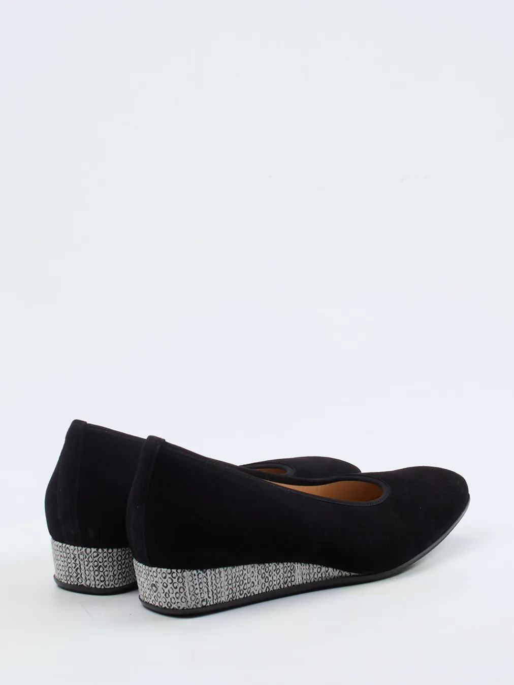 Ein Keilpumps wie gemacht für stilvolle Alltagssituationen: hochwertiges Veloursleder, weiches Fußbett und ein dezenter Animal-Print bilden eine elegante Symbiose.