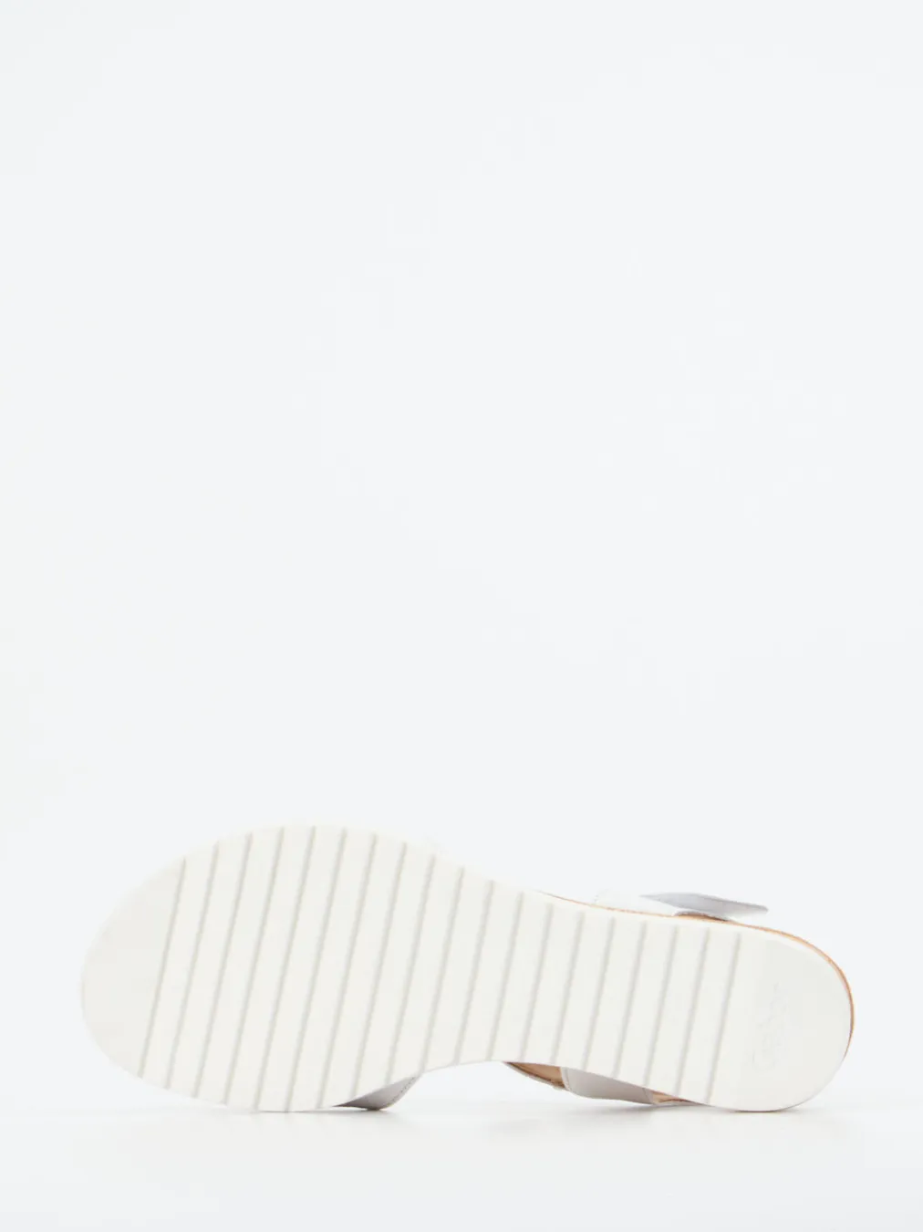 Sommerkomfort für jeden Tag.Gabor Comfort steht bei dieser Keilsandalette für passgenauen Halt und angenehmen Tragekomfort. Für ausgedehnte Spaziergänge oder entspannte Urlaubstage: Das natürlich genarbte Kalbleder in strahlendem Weiß liegt matt in der Optik und weich am Fuß. Die Kombination aus Klettverschluss und seitlichem Elasteinsatz sorgt für eine flexible Passform. Der Keilabsatz in Korkoptik verleiht Höhe mit Leichtigkeit, während die profilierte Gummisohle sicheren Grip bietet. Dezente Nähte und ein cleanes Design betonen den lässig-minimalistischen Look. Ein bequemes Lieblingsstück mit funktionalem Design und sommerlicher Ausstrahlung.
