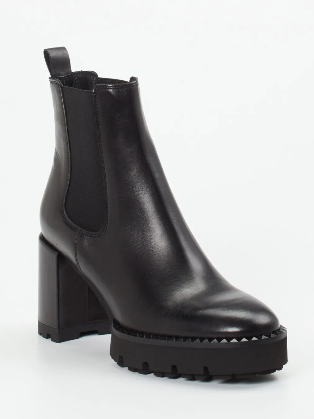 Modernes Understatement mit Profil.Kennel & Schmenger präsentiert elegante Chelsea Boots für Damen. Für stilvolle City-Alltage bieten die schwarzen Boots aus hochwertigem, glänzendem Kalbleder markante Akzente. Die knöchelhohe, schmal zulaufende Form mit tonigem Elastik-Einsatz und Zuglasche ermöglicht leichtes Anziehen und eine klare Silhouette. Die profilierte Gummisohle mit gezahnter Plateau-Kante und 7 cm hohem Blockabsatz sorgt für einen kraftvollen Auftritt – inspiriert vom Chunky-Trend und dennoch ruhig im Ausdruck. Kombiniert mit einem Wollmantel entsteht ein ausgewogener Streetstyle-Look. Ein Modell, das klare Linien mit femininer Stärke vereint – stilprägend mit Statement-Charakter.