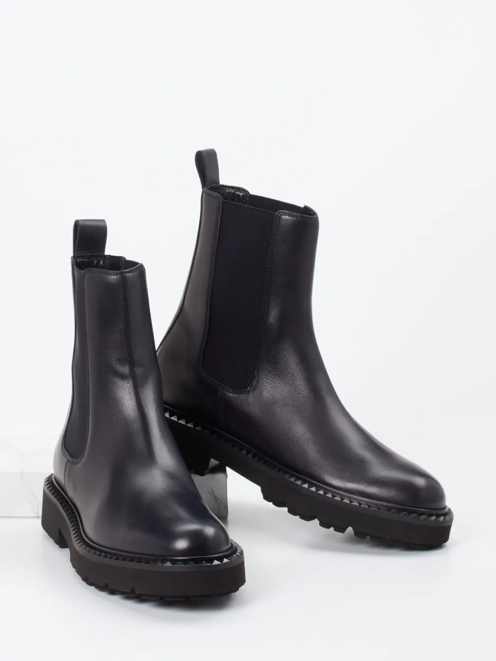 Markanter Look für jeden Stadtmoment.Kennel & Schmenger präsentiert elegante Chelsea Boots für Damen. Ideal für den Übergang zwischen Büroalltag und urbanem Flanieren: Das tiefblaue Kalbleder mit edlem Glanz, kombiniert mit einem klassischen, knöchelhohen Schnitt und bequemem Elastikeinsatz, verleiht dieser Stiefelette ihre stilprägende Präsenz. Die Schlupfform erleichtert den Einstieg, während die profilierte Gummisohle im angesagten Heavy-Sole-Stil für Grip und optische Substanz sorgt. Feine Details wie die Pyramidenstruktur an der Sohlenseitenkante und die rückseitige Zuglasche ergänzen das minimalistische Design. Ein Favorit unter clean-urbanen Styles, ideal zu monochromen Looks. Hochwertige Verarbeitung mit klarem Designanspruch – made by Kennel & Schmenger.