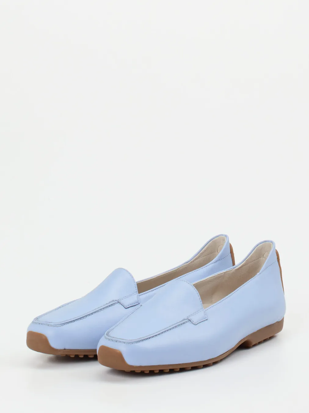 Frische Eleganz trifft komfortable Raffinesse.Der Damen-Loafer von Kennel & Schmenger überzeugt in klassisch flacher Carréform und hellblauem Kalbleder. Ideal für Tage, an denen stilvoller Komfort im Vordergrund steht: Das matt strukturierte Kalbleder wirkt besonders hochwertig und ist durch seine weiche Haptik ein spürbares Qualitätsmerkmal. Die dezente Ton-in-Ton-Naht unterstreicht das minimalistische Design, während die honigfarbene Noppensohle optisch kontrastiert und funktional für Rutschfestigkeit sorgt. Die gummierte Fersenkappe orientiert sich am sportlich-eleganten Autofahrerstil. Inspiriert vom Quiet-Luxury-Trend lässt sich der Loafer vielseitig zu hellen Stoffhosen oder pastellfarbener Garderobe einsetzen. Komfort und Understatement – typisch Kennel & Schmenger.