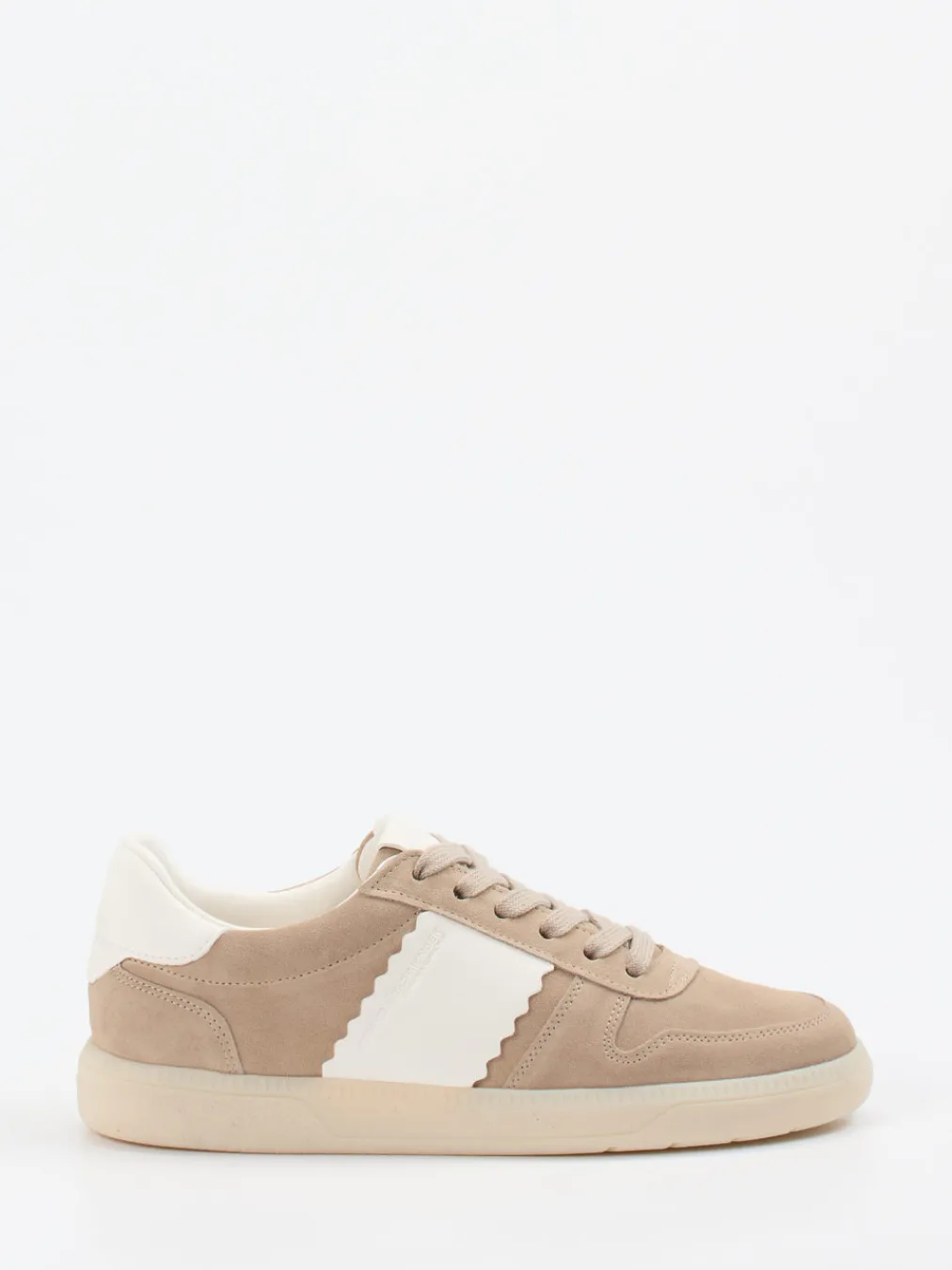 Dezente Eleganz mit textiler Raffinesse.Kennel & Schmenger präsentiert mit diesem Sneaker ein stilistisch reduziertes Damenmodell für den Alltag. Die Kombination aus sandbeigem Veloursleder, das samtig angeschliffen ist, und weißen Kalbleder-Overlays verleiht dem Modell seinen dezenten Look. Der klassische Schnitt mit flacher Silhouette, komfortabler Polsterung und austauschbarem Fußbett macht ihn zum zuverlässigen Begleiter. Feine Details wie das tonale Zacken-Element an der Seite und die strapazierfähige Gummisohle mit Fischgrätprofil runden das Design funktional ab. Inspiriert von „Quiet Luxury“ und „Soft Neutrals“ der Saison, lässt sich dieser Sneaker ideal zu entspannten Chinos oder Oversize-Shirts kombinieren. Kennel & Schmenger steht für bewusstes Understatement mit hohem Qualitätsanspruch.