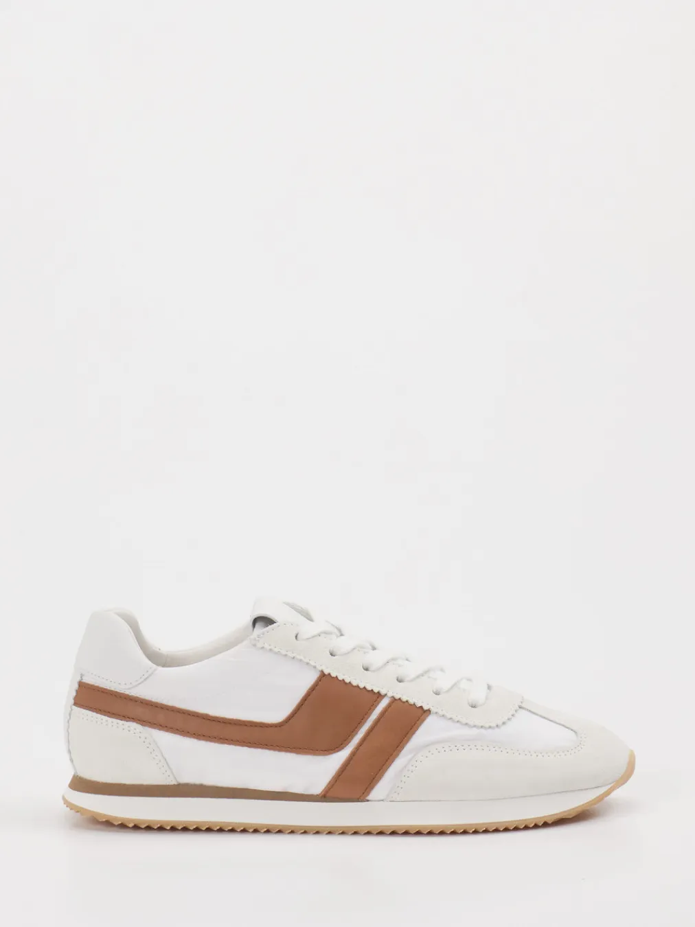 Vintage-Flair trifft Alltagskomfort. Kennel & Schmenger präsentiert einen Sneaker, der Casual-Design mit modischer Aussagekraft verbindet. Ideal für urbane Streifzüge oder spontane Freizeitaktivitäten überzeugt das Modell durch seinen Materialmix aus hochwertigem Veloursleder und atmungsaktivem Textil. Das klare Weiß wird durch mittelbraune Akzente und Ton-in-Ton-Nähte ergänzt, während die flache Silhouette und die leichte Gummisohle mit profilierter Unterseite für Bewegungskomfort sorgen. Die klassische Schnürung und die Seitenapplikationen im Retro-Runner-Stil betonen den sportiven Charakter mit Vintage-Note. Lässt sich vielseitig zu Denim oder sportlich-eleganter Alltagsmode kombinieren. Markentypisch stilvoll und trendsicher interpretiert.