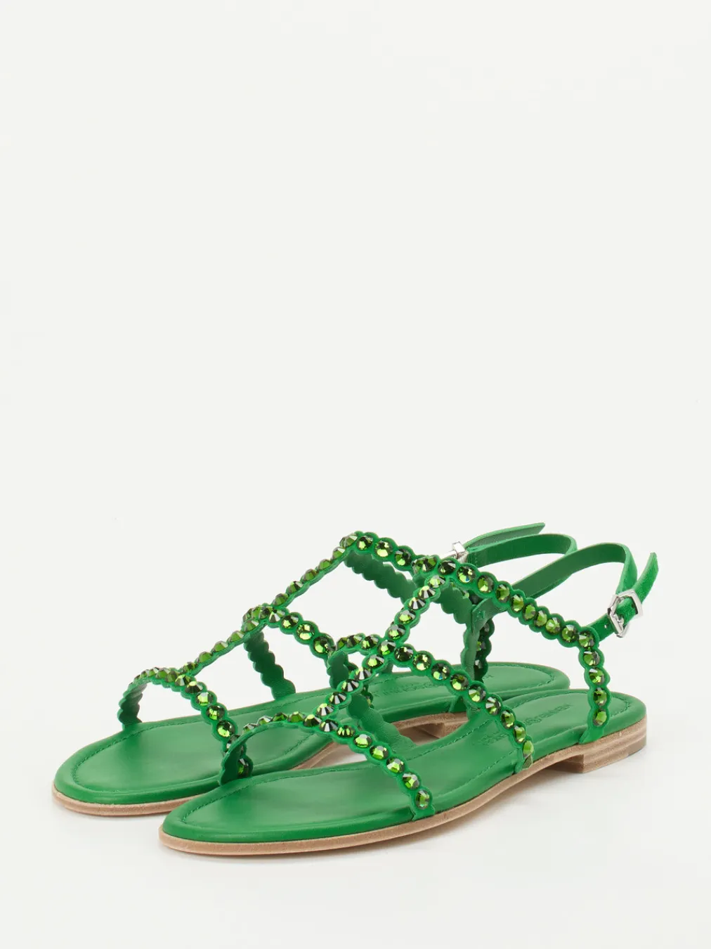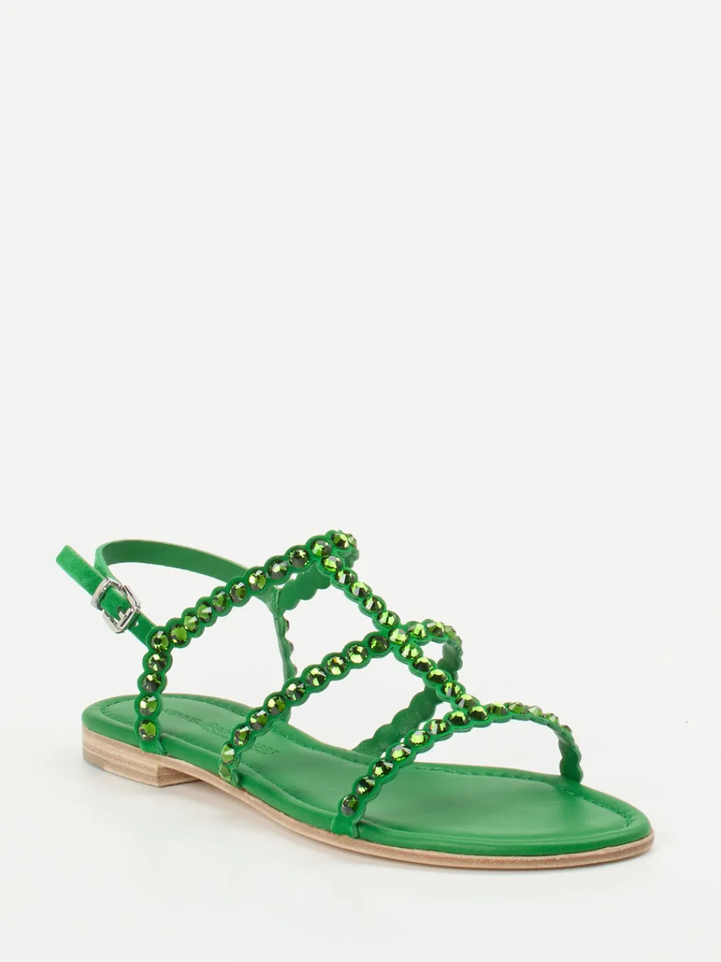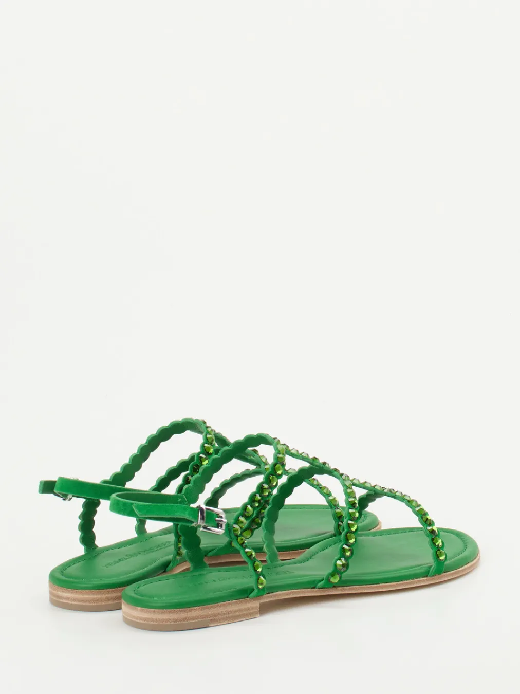 Die sandgrüne Zehentrenner-Sandalette von Kennel & Schmenger verbindet samtiges Veloursleder mit funkelnden Strassdetails – ideal für einen trendbewussten Sommerauftritt.