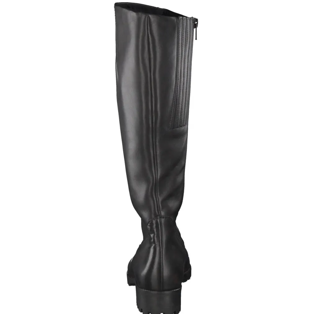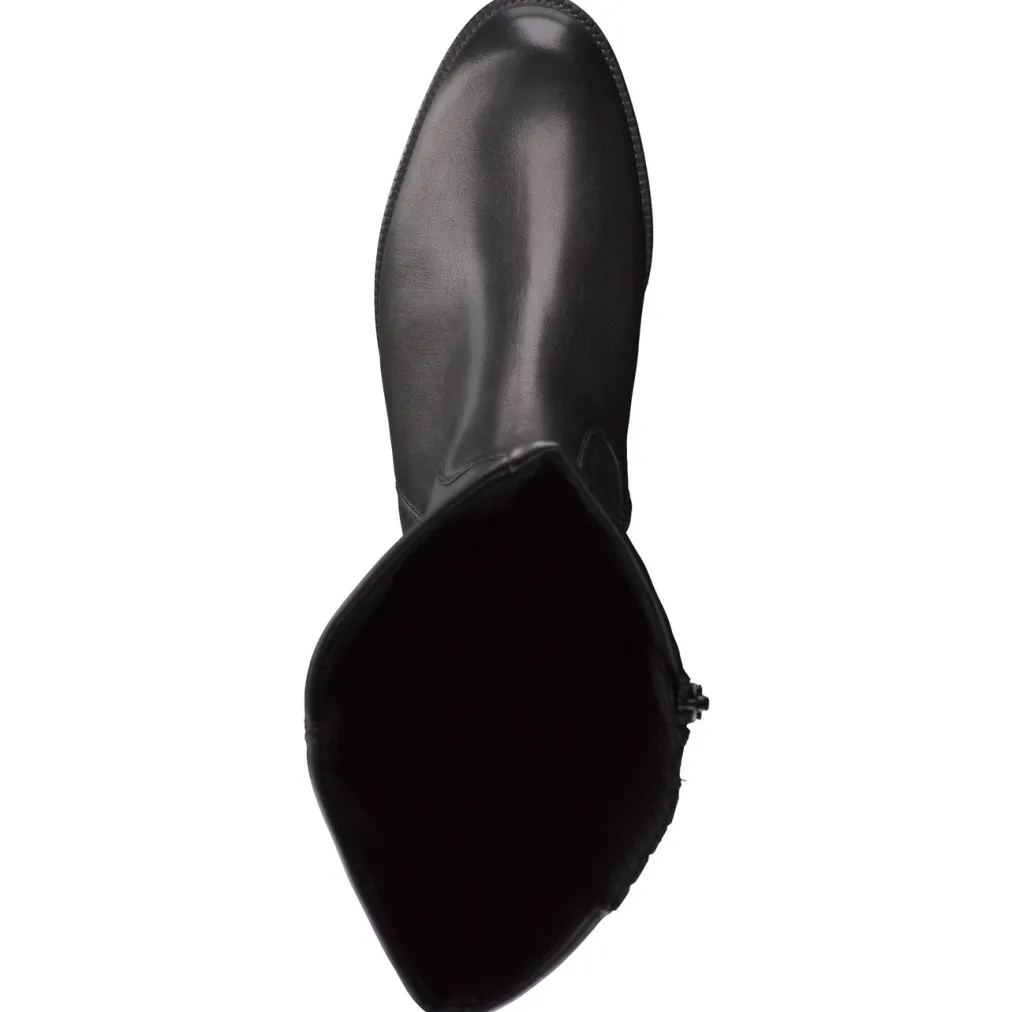Semler präsentiert kniehohe Stiefel für Damen – Form Vanessa in komfortabler Weite H. Für kühle Tage in Stadt oder Büro bietet dieser schwarze Stiefel aus feinem Kalbleder mit matt wirkender Oberfläche stilvolle Zurückhaltung. Die taillierte Silhouette, der seitliche Reißverschluss und ein hinten eingearbeiteter Elastikeinsatz garantieren Komfort und Passform. Ton-in-Ton-Nähte und die klar strukturierte Form unterstreichen den minimalistischen Charakter mit Reitstiefel-Flair. Die profilierte Gummisohle mit flachem Absatz gibt sicheren Halt, das Mikrofaservlies im Inneren sorgt für angenehmes Fußklima. Kombinierbar zu schmalen Hosen oder Midirock. Semler bietet Qualität, Passform und zeitlosen Chic für anspruchsvolle Trägerinnen.