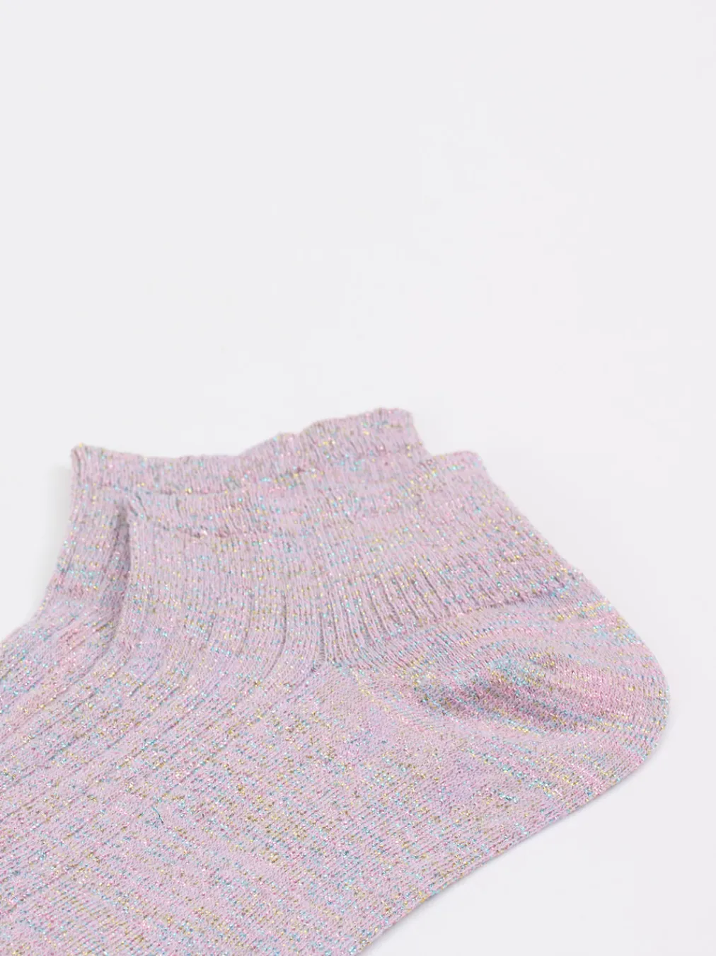 Die glitzernde Knöchelsocke von Alto Milano vereint feinen Feinstrick mit Lurex-Fäden – ein modisches Highlight für trendbewusste Looks mit Y2K-Attitüde.