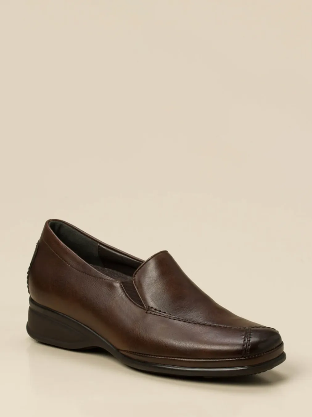 Stilsicher durch den Tag.Die Marke Semler präsentiert einen Komfort-Slipper für Damen in Weite H. Ob für den täglichen Weg ins Büro oder entspannte Stunden im Café – dieser Slipper bietet hohen Gehkomfort bei klassisch-minimalistischem Stil. Gefertigt ist das Modell aus hochwertigem Kalbleder, matt verarbeitet und in einem tiefen Dunkelbraun gehalten. Elastikeinsätze beidseitig erleichtern den Einstieg und sorgen für eine flexible Passform. Die profilierte PU-Sohle mit Keilansatz ist rutschhemmend und unterstützt einen sicheren Tritt. Zeitlose Linien, Ton-in-Ton-Nähte und eine leicht abgesetzte Zehenpartie unterstreichen die minimalistische Formensprache. Besonders stilvoll in Kombination mit Stoffhose und Lederhandtasche. Ein bequemer Allrounder von Semler mit souveräner Eleganz und handwerklicher Detailtreue.