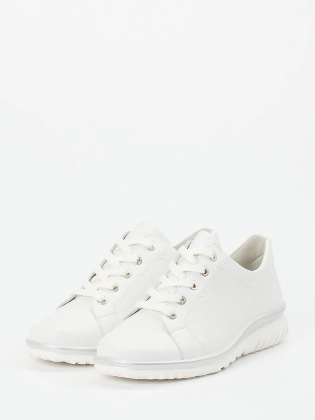 Ideal für entspannte Alltagsmomente bietet das Modell durch weiches, genarbtes Kalbleder ein angenehmes Tragegefühl. Die runde Form, die praktische Schnürung mit Metallösen und die individuell auswechselbare Einlage fördern spürbaren Komfort. Optisch setzen der silberfarbene Sohlenrand und die gewellte PU-Luftpolstersohle einen modernen Akzent. Im Trendfeld „Quiet Luxury“ und „Soft Comfort SS24“ lässt sich das Modell mühelos zu hellen Freizeit-Outfits kombinieren.