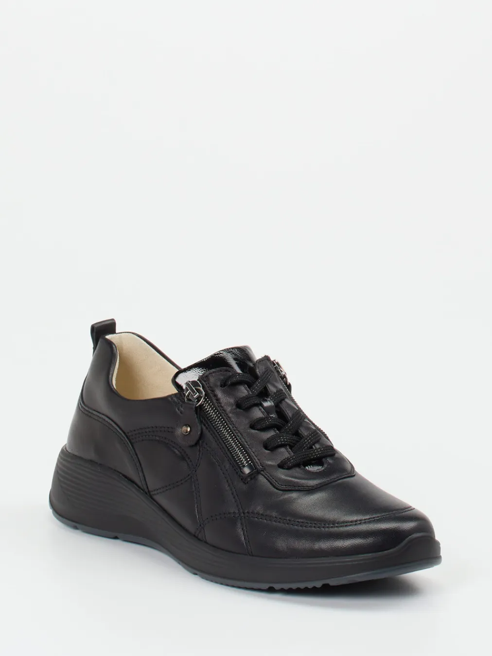 Dieser Komfort-Sneaker von Waldläufer vereint weiches Lammleder mit funktionalen Details wie Reißverschluss und ergonomischer Profillaufsohle – ideal für entspannte Alltagswege.