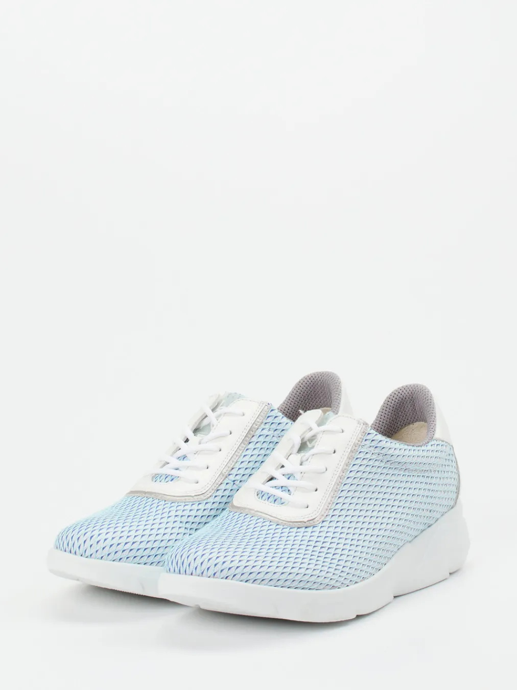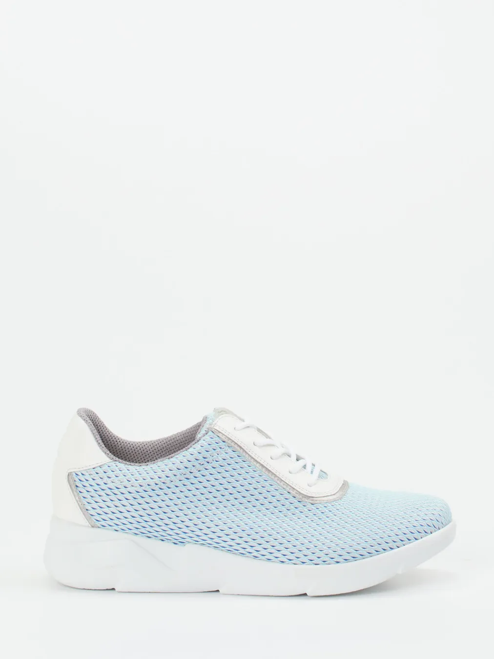 Leichtigkeit neu erlebt.Waldläufer präsentiert einen Damen-Komfort-Sneaker für die Frühjahr/Sommer-Saison. Dieser Sneaker überzeugt mit atmungsaktivem Textilmaterial und einer luftigen Mesh-Struktur in Pastellblau. Overlays aus glattem, weißem Kalbleder und sportlich-abgerundete Silhouette betonen das moderne Design. Der gepolsterte Schaftrand, die ergonomische EVA-Sohle mit Dämpfung und die herausnehmbare Innensohle bieten flexible Unterstützung für Alltag und Freizeitaktivitäten. Stilistisch orientiert sich das Modell an aktuellen Comfort-Tech-Trends und dem minimalistischen Look. Ein durchdachter Begleiter mit Fokus auf Komfort und Funktionalität – made by Waldläufer.