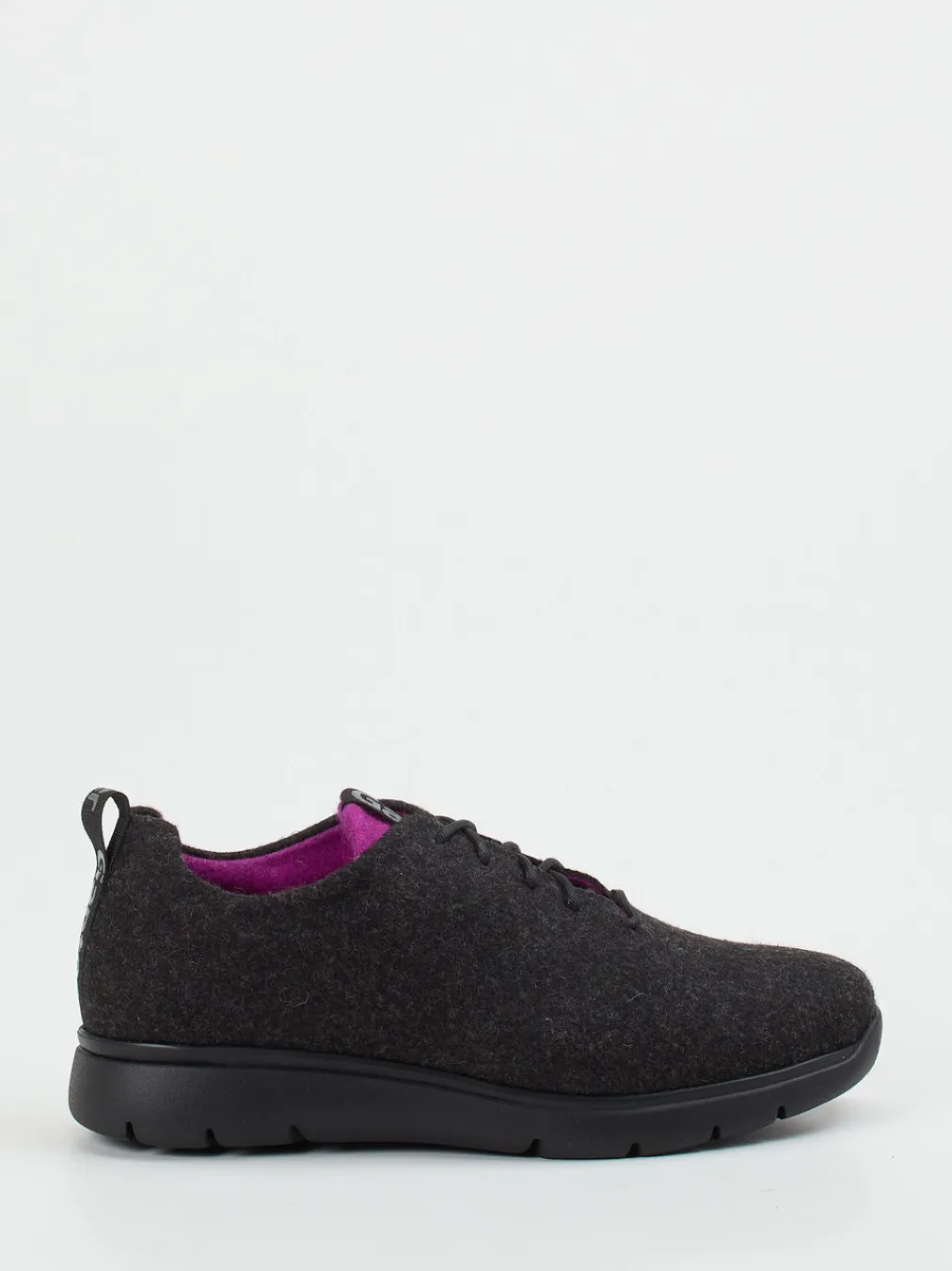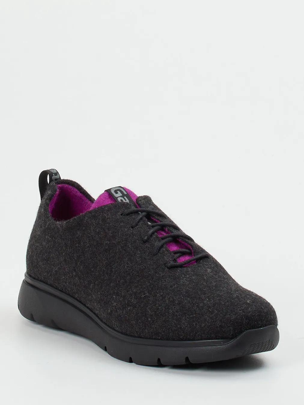 Natürlich. Bequem. Reduziert.Die Marke Ganter präsentiert mit diesem Komfort-Sneaker eine stilvolle Option für entspannte Stunden. Perfekt für Auszeiten zu Hause oder entspannte City-Tage: Das Modell aus dunkelgrauer, weich-melierter Wolle kombiniert minimalistisches Design mit funktionalen Details. Die Ton-in-Ton-Schnürung, das kontrastfarbene Innenfutter in Magenta und die schwarze, besonders leichte Gummisohle mit rutschhemmendem Profil unterstreichen Komfortanspruch und Stil affines Understatement. Die Weite G und das austauschbare Korkfußbett machen das Modell auch für eigene Einlagen tragbar. Inspiriert vom Trend „Quiet Luxury“ ist dieser Schuh ein Favorit für alle, die Natürlichkeit und Komfort schätzen. Ganter verbindet reduziertes Design mit spürbarem Wohlgefühl.