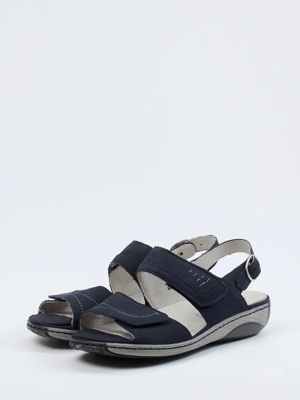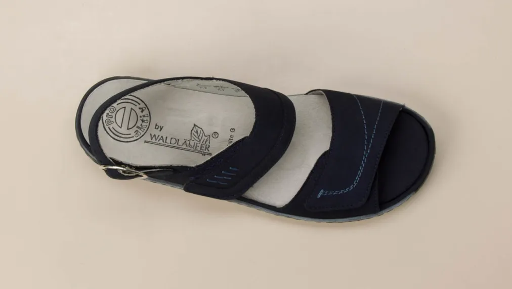 Stilvoll durch den Alltag.Die Komfortsandale von Waldläufer überzeugt mit Funktionalität und hochwertiger Verarbeitung. Für lange Wege oder entspannte Stunden daheim bietet das handschuhweiche Nubukleder in Dunkelblau samtig-angenehmen Tragekomfort. Breite, individuell verstellbare Riemen mit Klettverschluss und silberfarbener Schnalle bieten sicheren Halt. Dezente Kontrastnähte und die strukturierte, hellgraue PU-Profilsohle sorgen für visuelle wie funktionale Akzente. Der ergonomische Aufbau mit Wechselfußbett unterstützt eine komfortorientierte Zielgruppe. Minimalistisches Design ergänzt den Functional-Trend der Saison. Waldläufer-Qualität für komfortbewusstes Gehen mit ästhetischer Zurückhaltung.