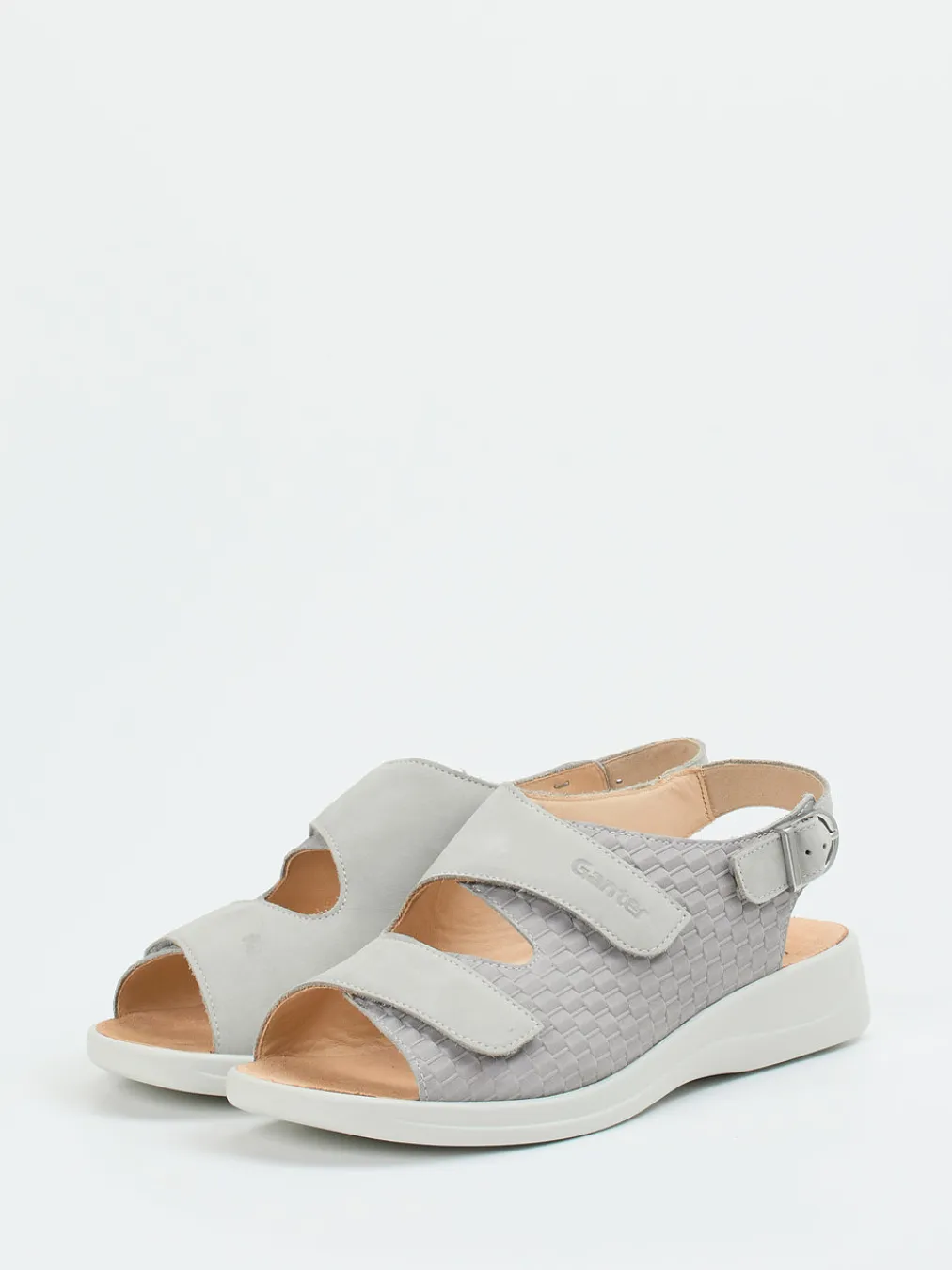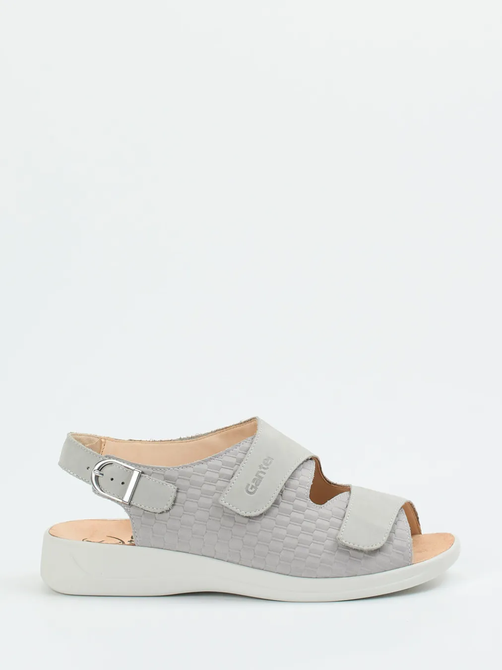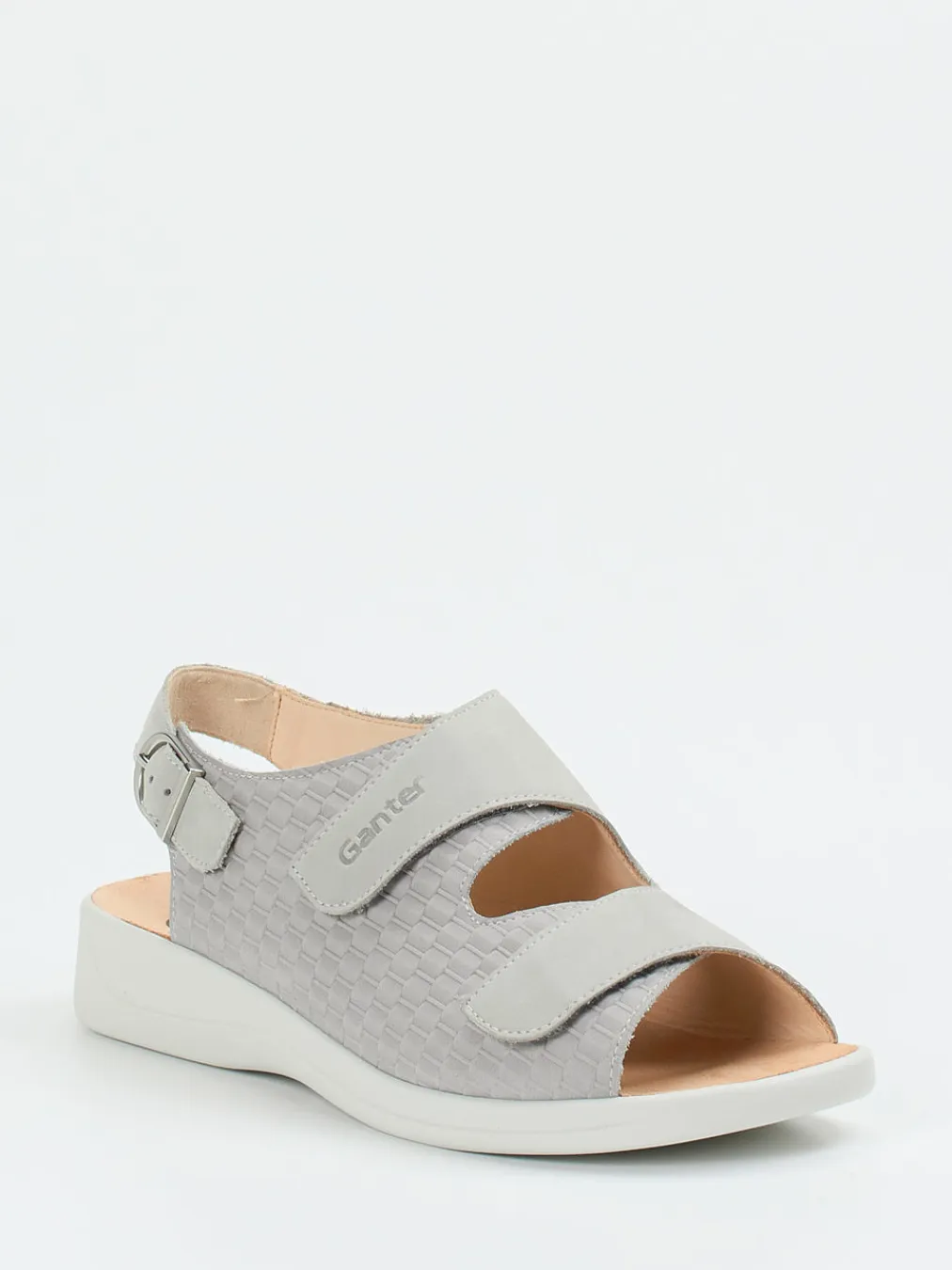 Geht auf entspannte Weise mit.Die Marke Ganter präsentiert hier eine Komfortsandale für Damen. Ob für den Alltag, gemütliche Stadtbummel oder entspannte Stunden zu Hause – dieses Modell überzeugt durch hochwertiges Nubukleder mit samtiger Velours-Textur. Die hellgraue Flechtoptik wirkt dezent modern, während zwei praktische Klettverschlüsse und der verstellbare Fersenriemen mit silberfarbener Schließe individuellen Halt geben. Das ergonomisch geformte, lederbezogene Fußbett sorgt gemeinsam mit der stoßdämpfenden Gummisohle für angenehmen Gehkomfort. Stilistisch ist dieser Bequemschuh dem Trend „Functional Comfort“ zuzuordnen und passt ideal zu relaxtem Freizeitstil in Naturtönen oder Denim. Ein Ganter-typischer Schuh für sensibles, doch stilvolles Gehen.