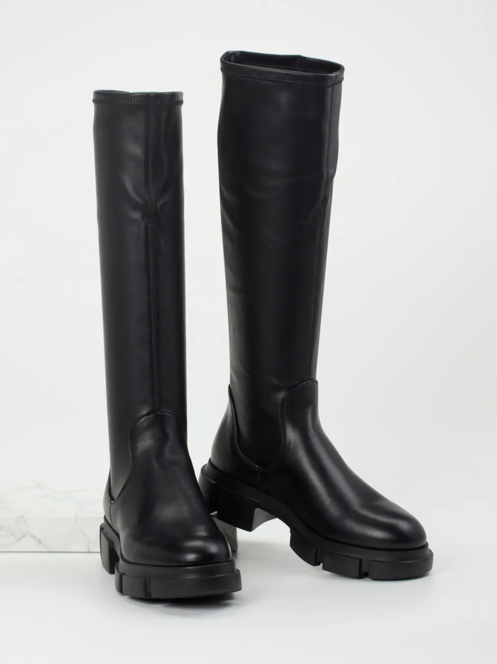 Für klare Linien und starken Stil.Copenhagen präsentiert mit diesem Langschaftstiefel ein progressives Modell für die Herbst-/Wintersaison. Ideal für urbane Alltagslooks mit Anspruch: Der Stiefel besteht aus Stretchmaterial und Glattleder mit matter Oberfläche. Die schlanke, gerade Silhouette und das monochrome Schwarz unterstreichen den reduzierten Look. Ein elastischer Schaft sorgt für individuell guten Halt, während die markante Profilsohle nicht nur optisch punktet, sondern auch Trittsicherheit bietet. Dezentes Branding an der Ferse komplettiert das Design. Trendnah durch Anklänge an Chunky-Styles und Quiet Luxury. Ein Style-Statement mit komfortbetonter Passform – typisch Copenhagen.