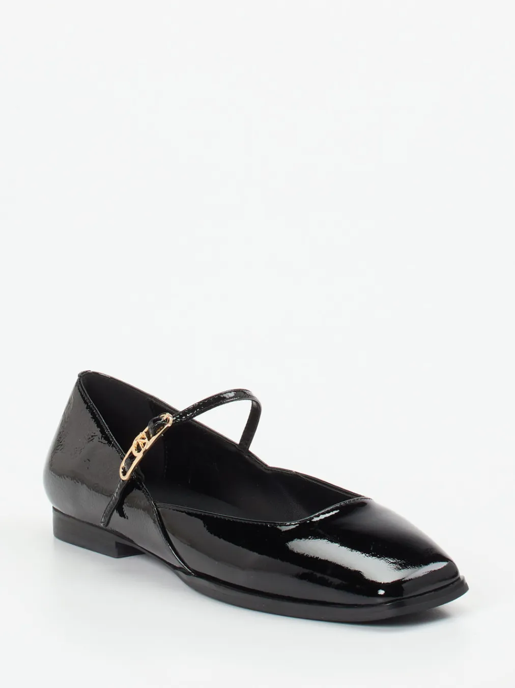 CAFèNOIR interpretiert klassische Mary Jane Ballerinas neu – in einer schwarzen Lackledervariante mit femininer Note.