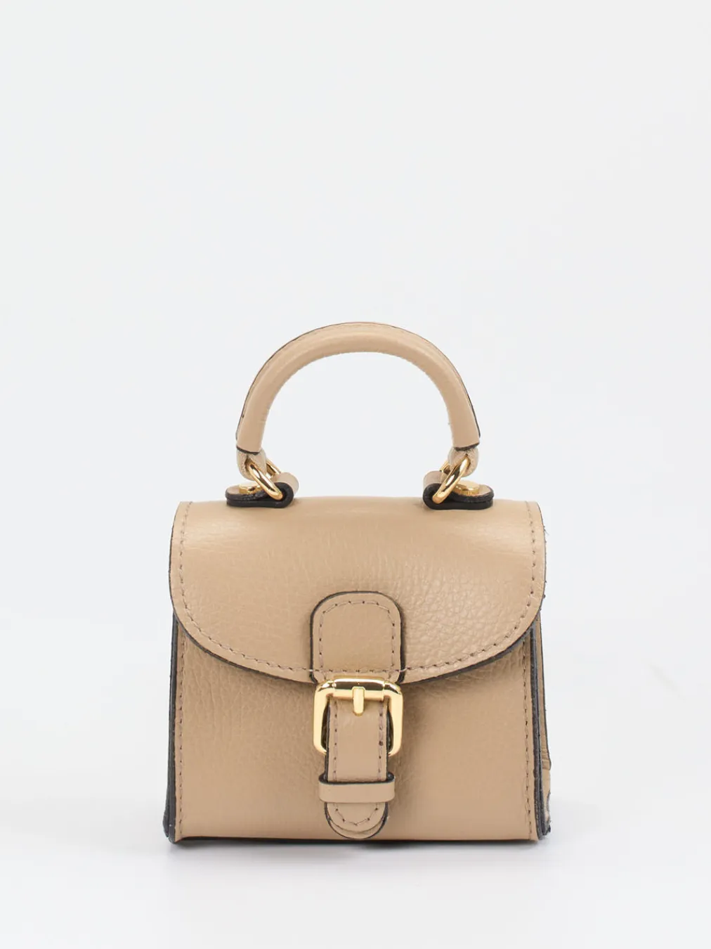 Die Mini-Tasche von Marlon Firenze vereint strukturiertes Kalbleder mit goldfarbenen Akzenten zu einem trendigen Statement-Piece für stilbewusste Looks.