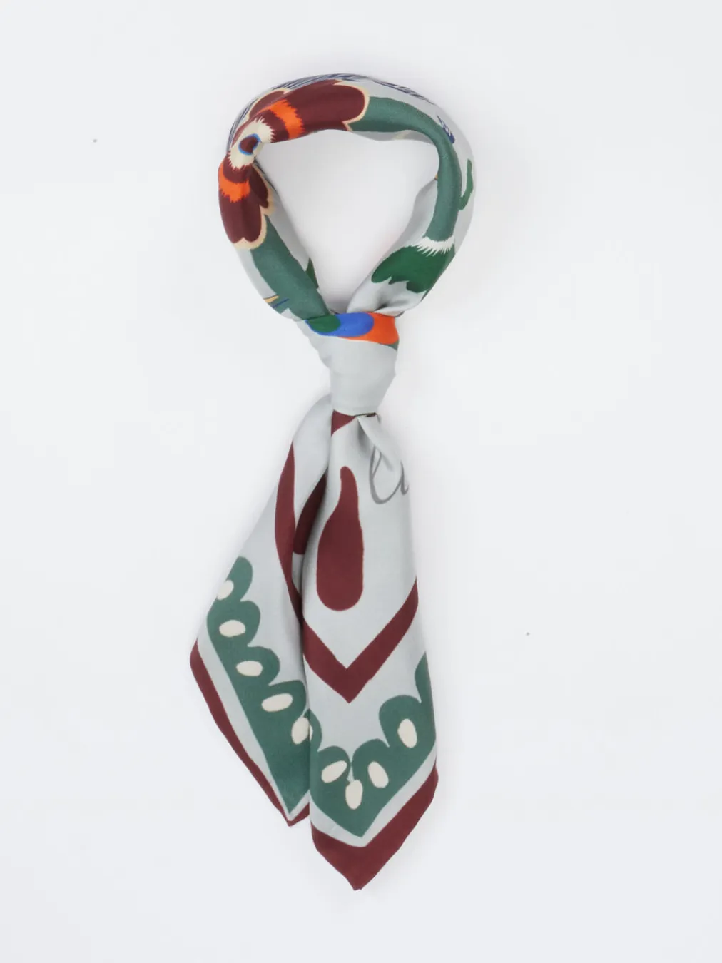Grafischer Blumenprint, luxuriöser Glanz und fließende Haptik machen dieses Nickituch zum stilvollen Akzent für minimalistische Looks und moderne Klassiker.