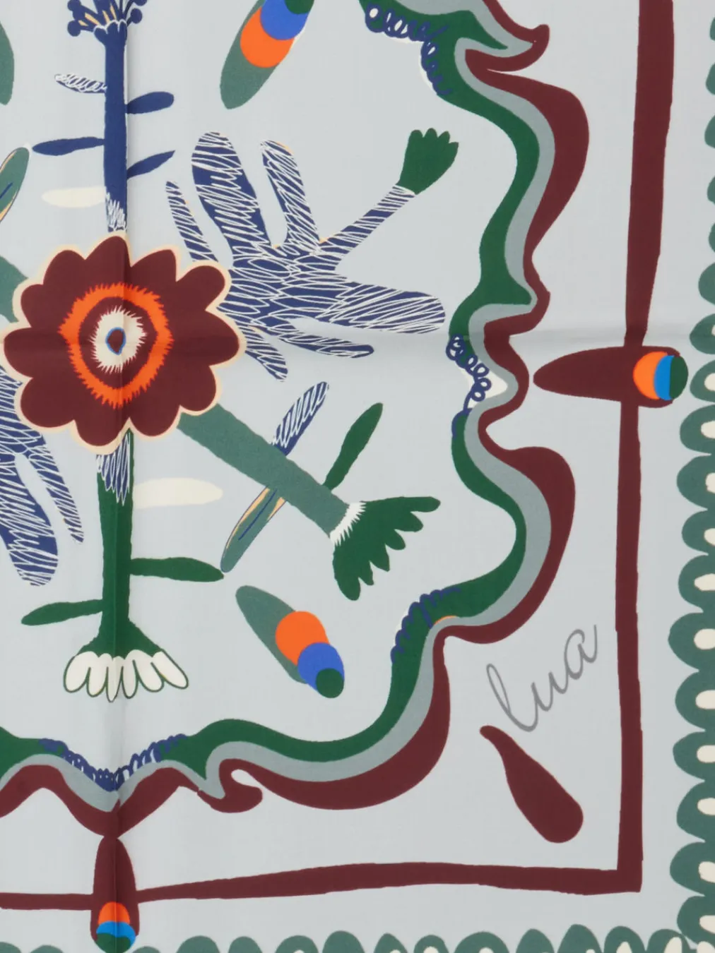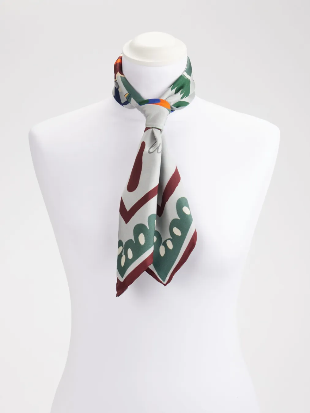 Leichtes Statement für jeden Stil. Lua Accessories zeigt mit diesem Damen-Nickituch, wie Accessoires Trends setzen können. Ob für Büro oder Freizeit: Das quadratische Tuch aus hochwertiger Seide präsentiert ein grafisch-florales Muster in Bordeaux, Tannengrün und Hellgrau. Der Digitaldruck unterstreicht die glänzende Oberfläche und die moderne Farbkomposition. Der umlaufende Zierdruck und das dezente Signatur-Element ’lua’ verleihen dem Accessoire eine stilvolle Note. Inspiriert von den 90er-Jahren passt das Modell perfekt zu Color-Blocking-Outfits oder eleganten Blazern. Ein vielseitiger Akzent für modebewusste Looks mit charakterstarkem Finish.