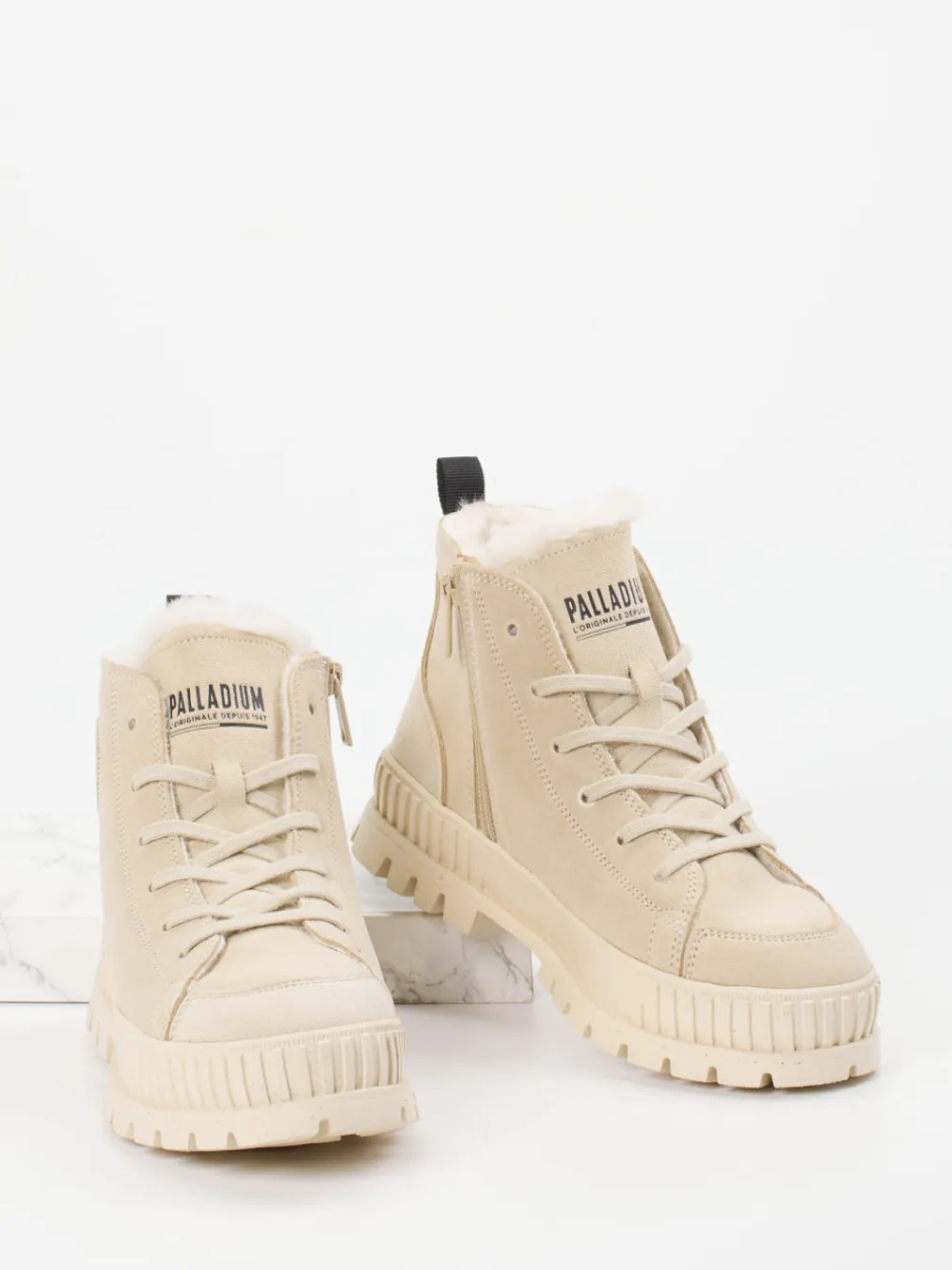 Urbaner Komfort neu gedacht.Palladium präsentiert: Winter-Sneakerboots für urbane Abenteuer mit hohem Anspruch. Wenn Temperaturen sinken und gleichzeitig Grip gefragt ist, überzeugen diese knöchelhohen Boots mit softem Veloursleder, innen warm gefüttert mit Textil. Die beige Farbgebung gibt ein zurückhaltendes Finish und passt perfekt zum funktionalen Streetwear-Design mit tonalen Nähten und Logopatches. Profilgummisohle und seitlicher Reißverschluss sorgen für sicheren Tritt und schnelles Anziehen. Inspiriert von Utility- und Gorpcore-Trends, ideal für Freizeit in kalter Jahreszeit. Durchdachter Style trifft markentypische Robustheit: komfortabel und winterbereit.