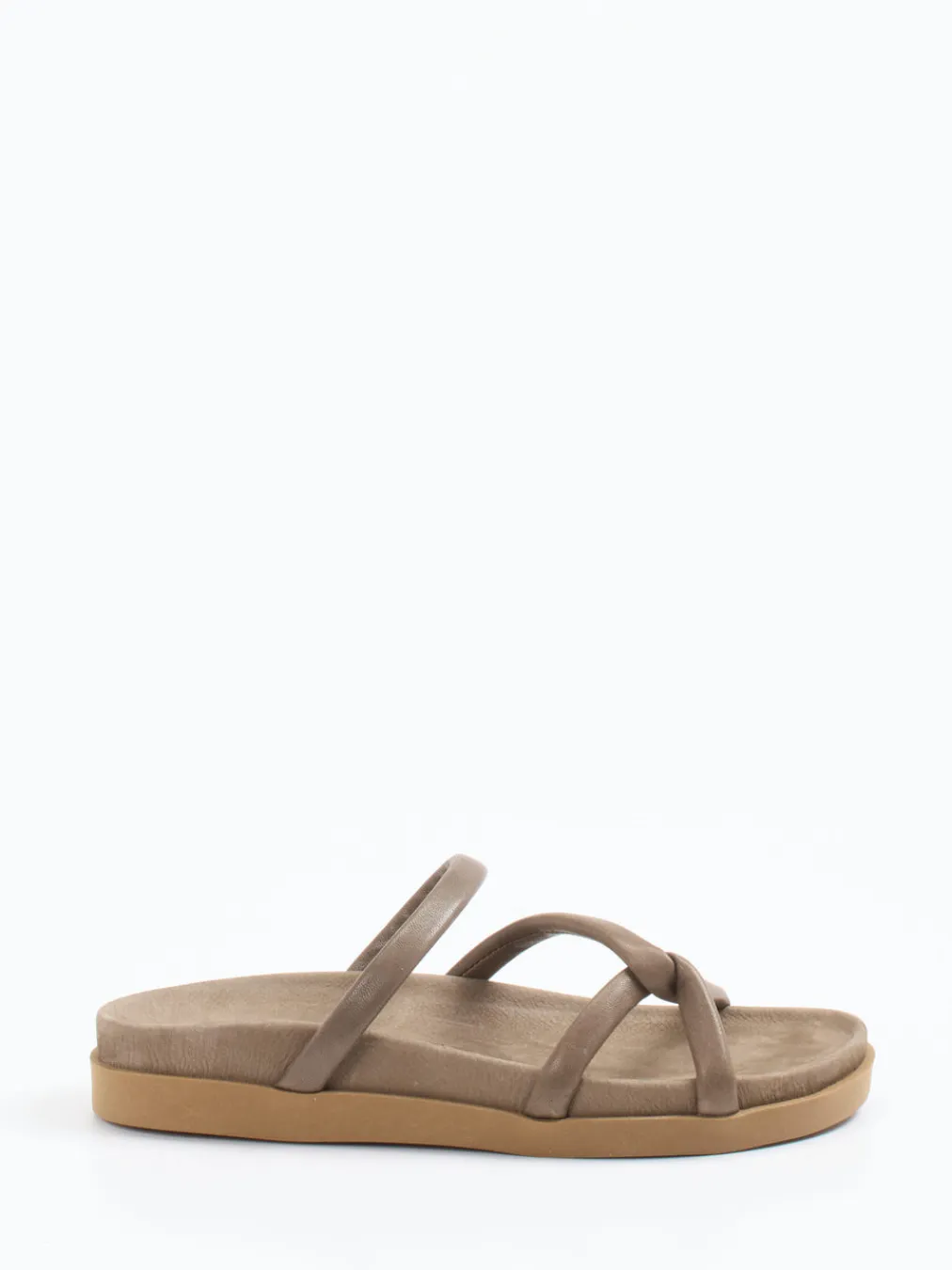 Die weich gepolsterten Riemen aus vegetabil gegerbtem Kalbleder bieten spürbaren Komfort, während die dezente Farbgebung zeitlos wirkt.