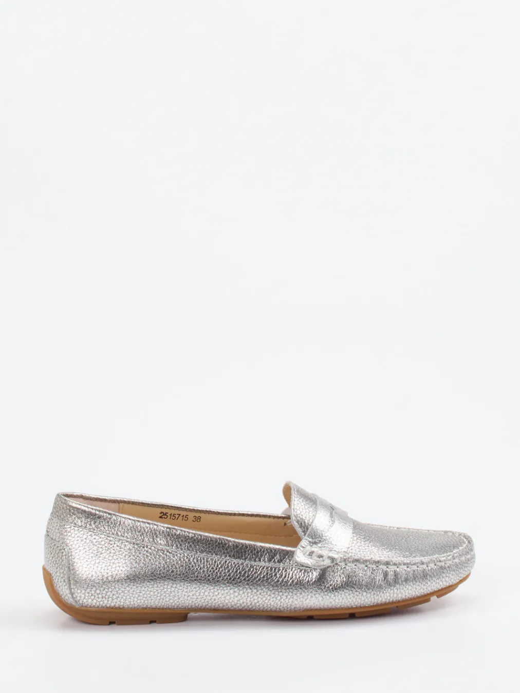 Stilvoll durch den Alltag.Der Damen-Slipper von Si vereint klassische Loafer-Silhouette mit einem modernen Metallic-Finish. Ideal für Meetings, Büro oder Lunch-Dates: Der Penny Loafer aus genarbtem, silberfarbenem Kalbleder überzeugt mit charakterstarker Oberfläche und Ton-in-Ton-Nähten als edles Detail. Die vernähte Mokassin-Naht und die charakteristische Zunge mit Penny-Slot unterstreichen den Vintage-inspirierten Look. Eine robuste, rutschfeste Gummisohle in Terrakotta ergänzt Funktion und Tragekomfort. Das pastellrosafarbene Lammnappa-Innenfutter sorgt für ein angenehm weiches Tragegefühl. Stilistisch greift das Modell den „Quiet Luxury“-Trend ebenso auf wie die saisonale Vorliebe für Metallics. Modischer Komfort mit Retro-Charme vom Qualitätshaus Si.