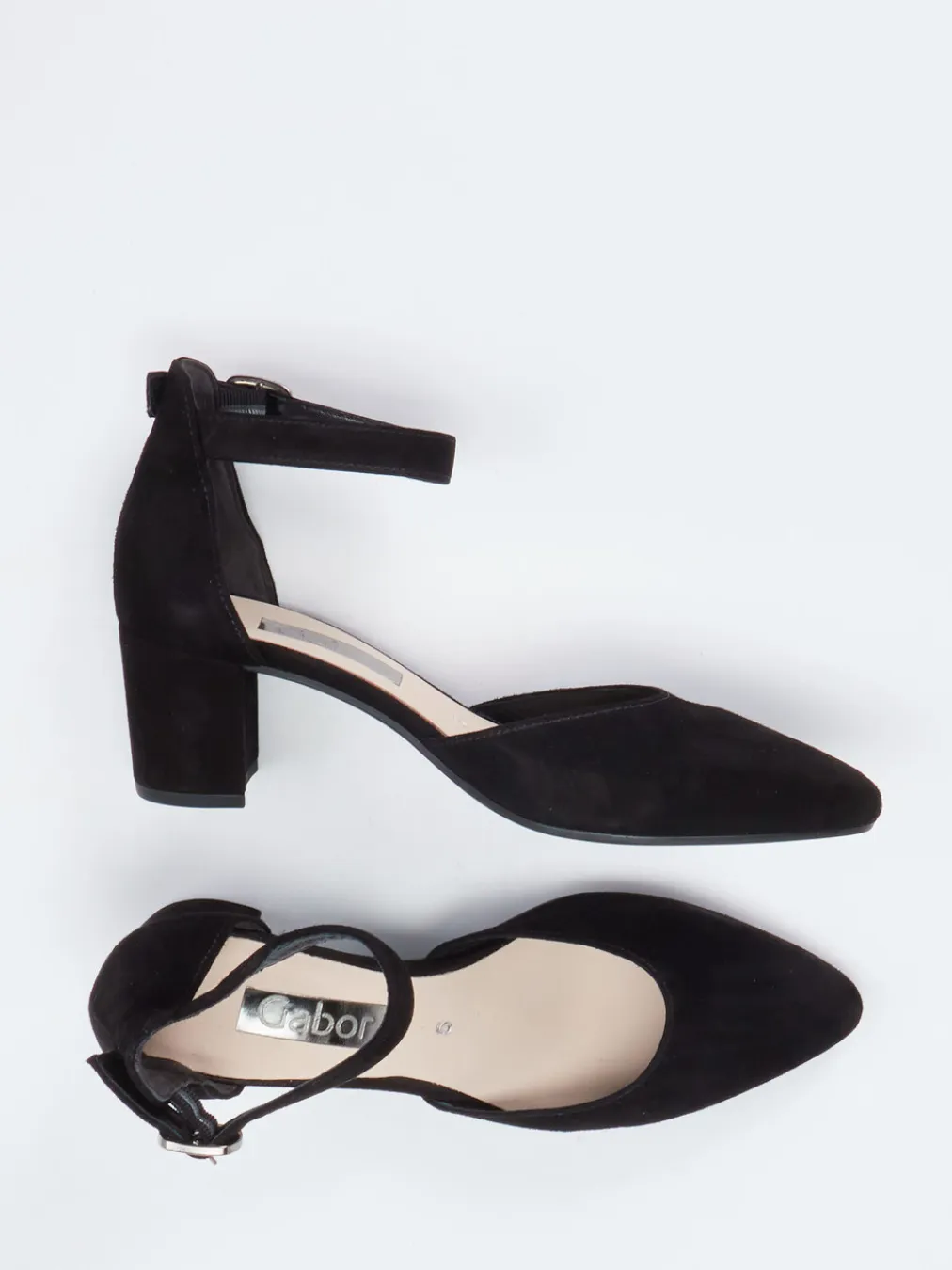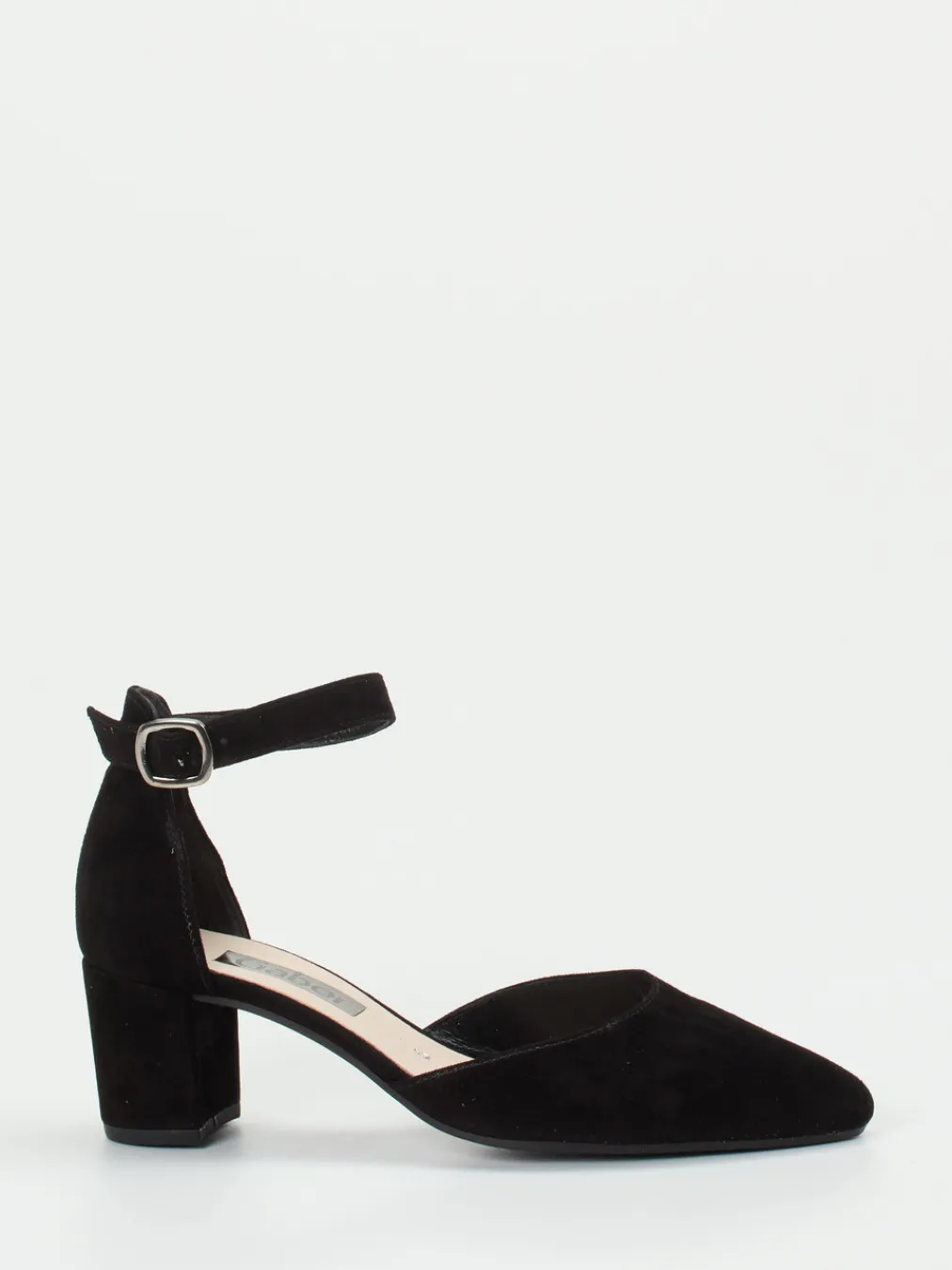 Eleganz mit modernem Understatement.Gabor präsentiert stilvolle Damen-Pumps mit markanter Silhouette und femininem Fesselriemen. Perfekt für lange Tage im Büro oder anspruchsvolle Events: Der schwarze Veloursleder-Schuh beeindruckt durch seinen samtigen Look, die geschlossene Vorderpartie und offenen Seiten. Die silberne Metallschnalle lässt sich individuell anpassen, während der bezogene Blockabsatz in Kombination mit der gepolsterten Innensohle aus Kalbleder hohen Tragekomfort bietet. Die profilierte Gummisohle sorgt für Trittsicherheit. Design-Details wie der minimalistische Schnitt und die matte Oberfläche fügen sich nahtlos in den Trend „Quiet Luxury“ ein. Ein funktionaler Klassiker mit stilsicherer Präsenz.