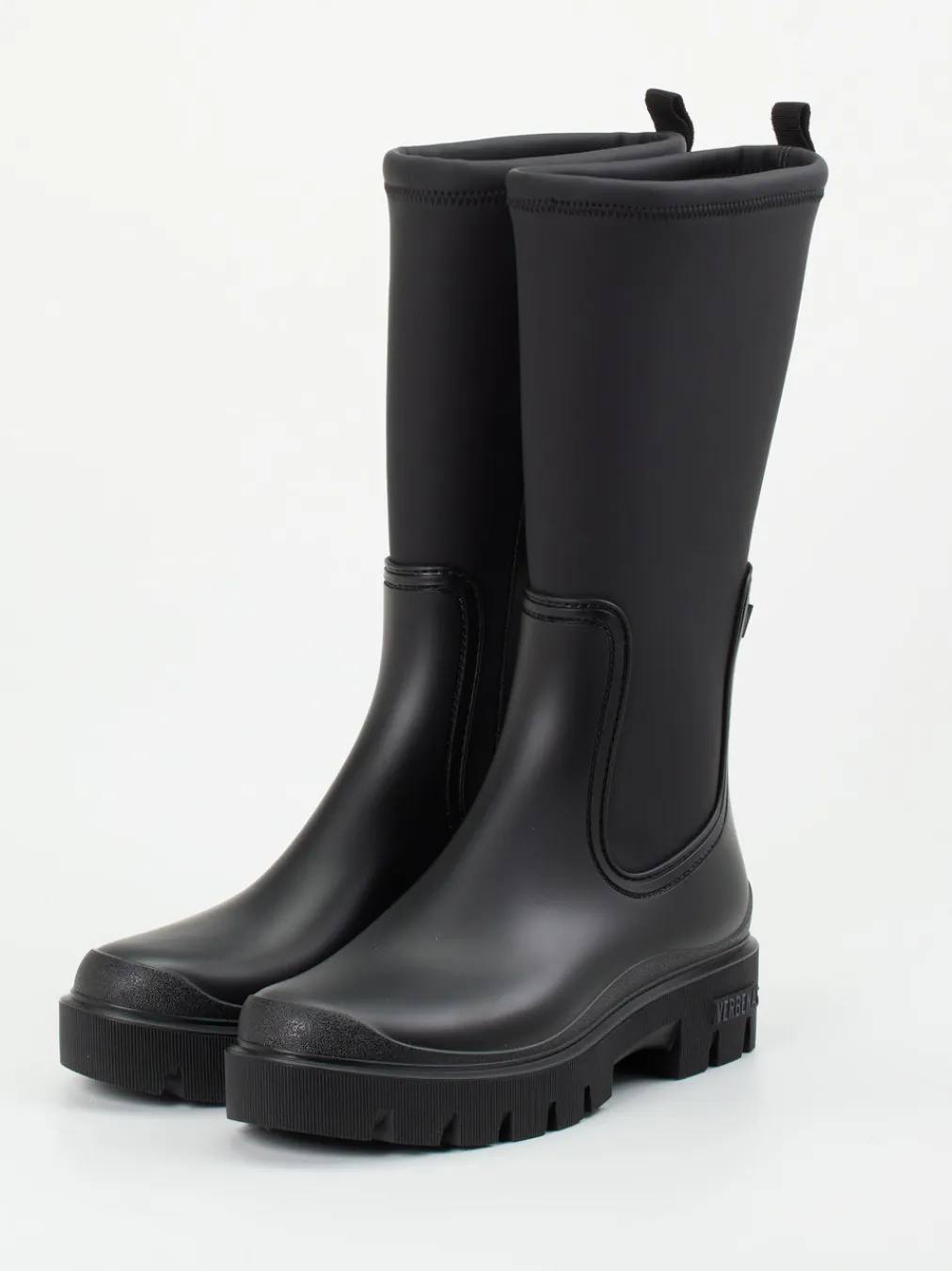 Urbane Funktion für nasse Tage.Verbenas präsentiert mit diesen Damen-Regenstiefeln einen funktional-modernen Klassiker. Bei wechselhaftem Wetter überzeugt das Modell mit wasserabweisendem Synthetik-Obermaterial, ergänzt durch einen matten Gummi-Look und einen elastischen Neopren-Schaft. Die clean schwarze Farbgebung unterstreicht das minimalistische Design im Gorpcore-Stil. Eine ausgeprägte, rutschhemmende Profilsohle sorgt für sicheren Tritt im Alltag. Details wie Ton-in-Ton-Nähte, Innenreißverschluss und Zuglasche veredeln das schlichte Erscheinungsbild. Kombiniert mit Parka oder Thermo-Leggings entsteht ein stilvoller Urban-Outdoor-Look. Ein robust-eleganter Begleiter mit wetterfester Alltagstauglichkeit von Verbenas.