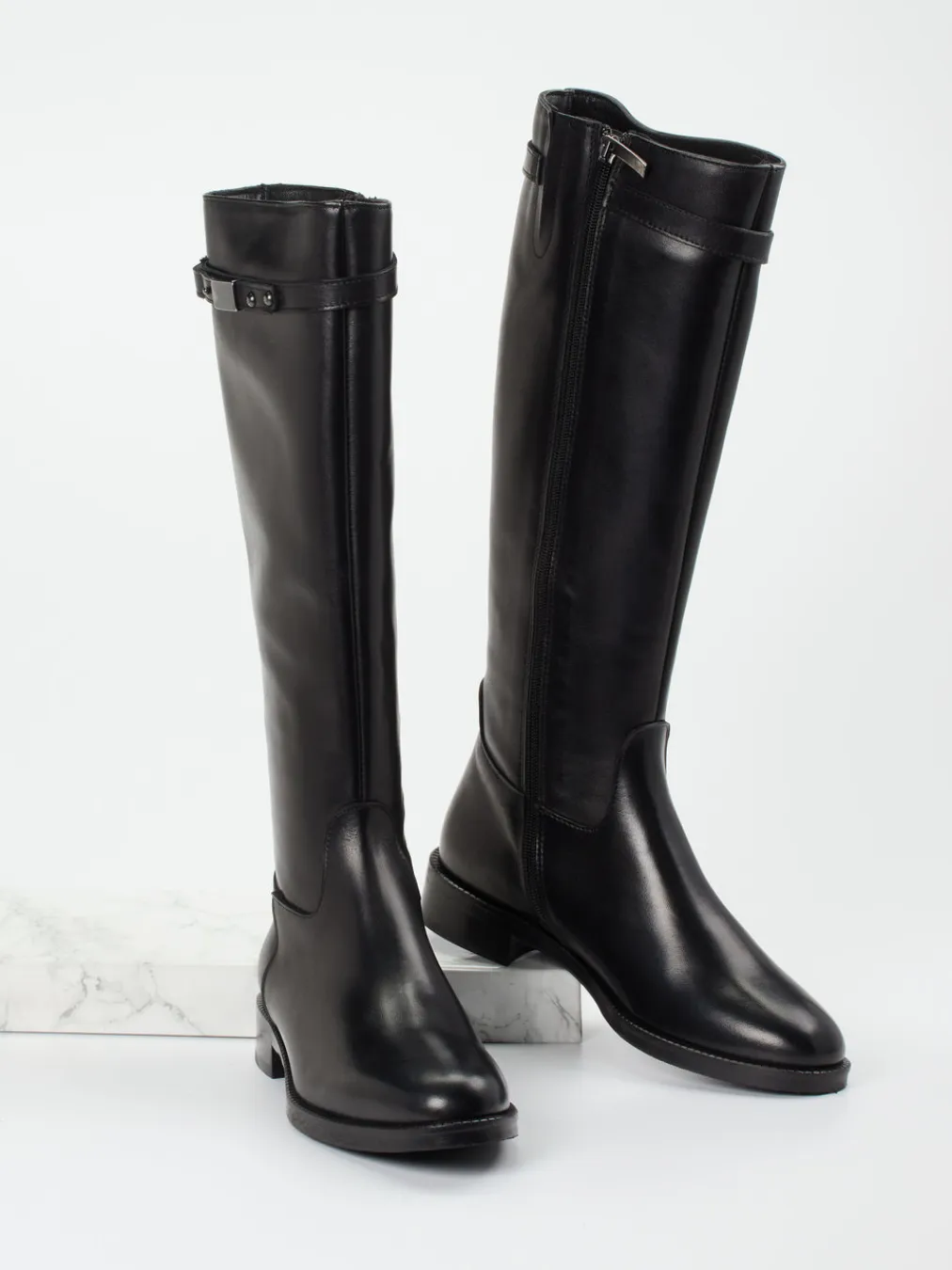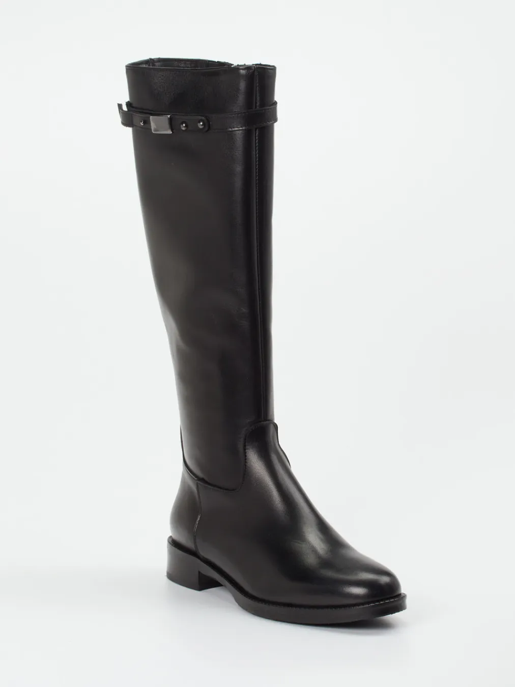 Der elegante Stiefel vereint hochwertiges Kalbleder mit minimalistischer Reitsportästhetik. Funktionale Details wie Reißverschluss und Zierschnalle runden das Design stilvoll ab.