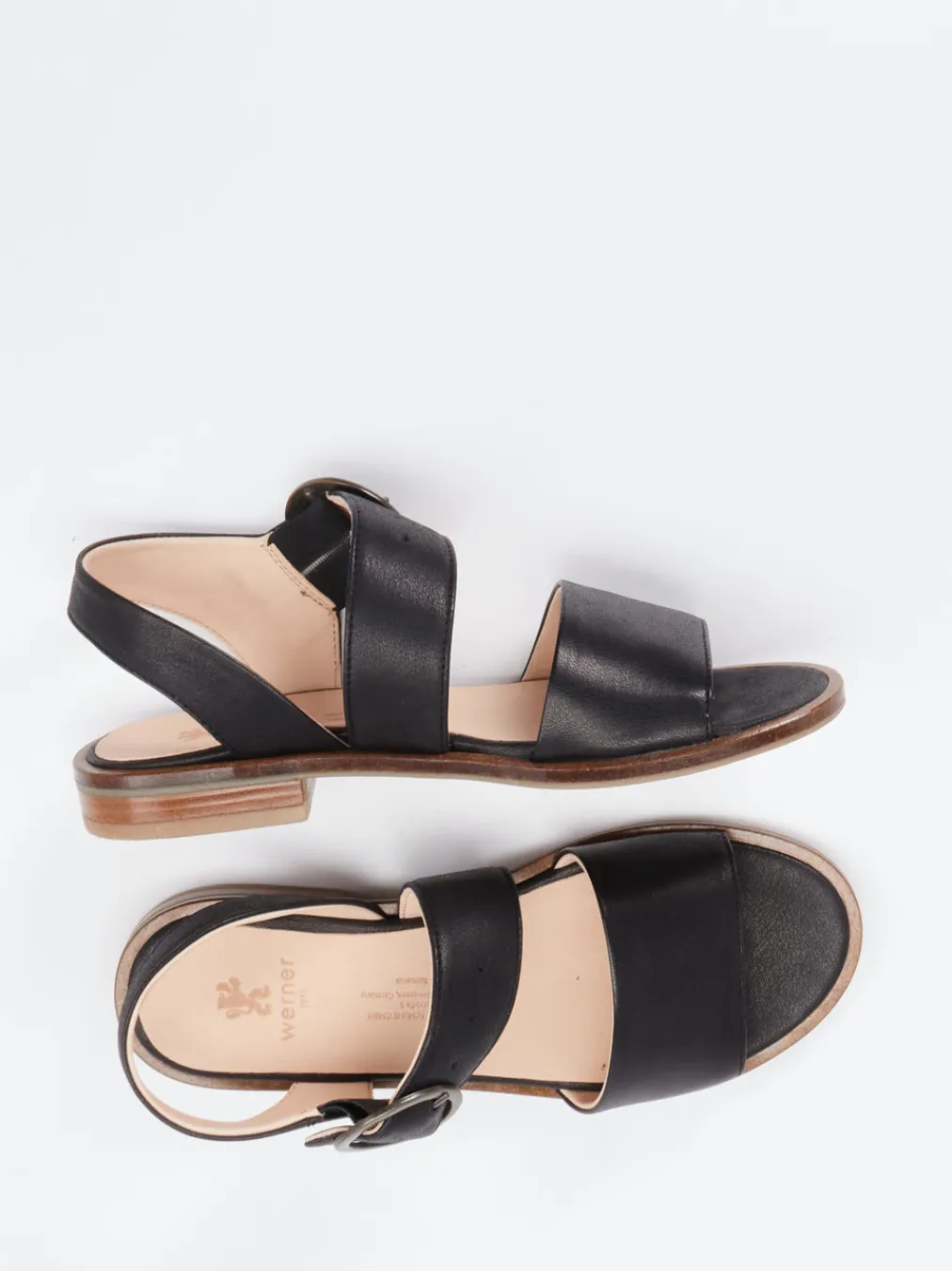 Diese flache Sandalette von Werner kombiniert chromfrei gegerbtes Kalbleder mit einem gepolsterten Lederfußbett – für stilvollen Komfort im Sommer.