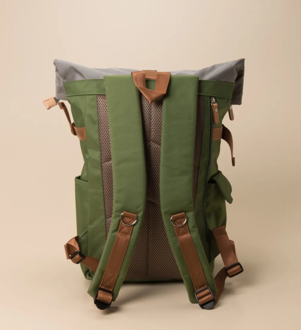 Dieser Rolltop-Rucksack von Harvest Label vereint urbanen Stil mit durchdachter Funktionalität – ideal für Freizeit und Outdoor-Trends wie Gorpcore.