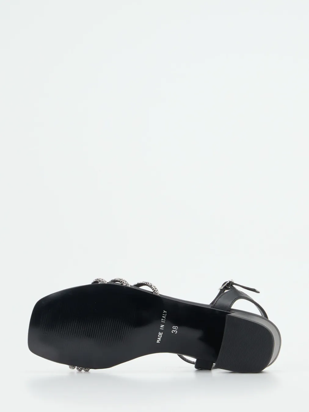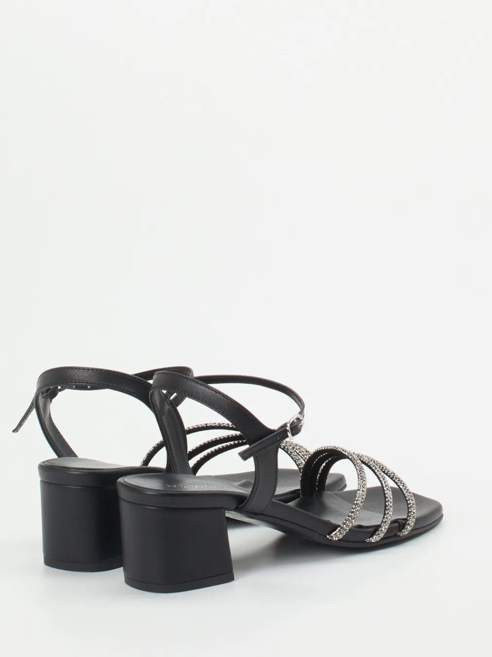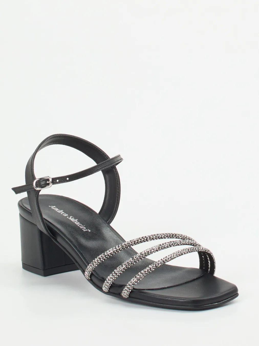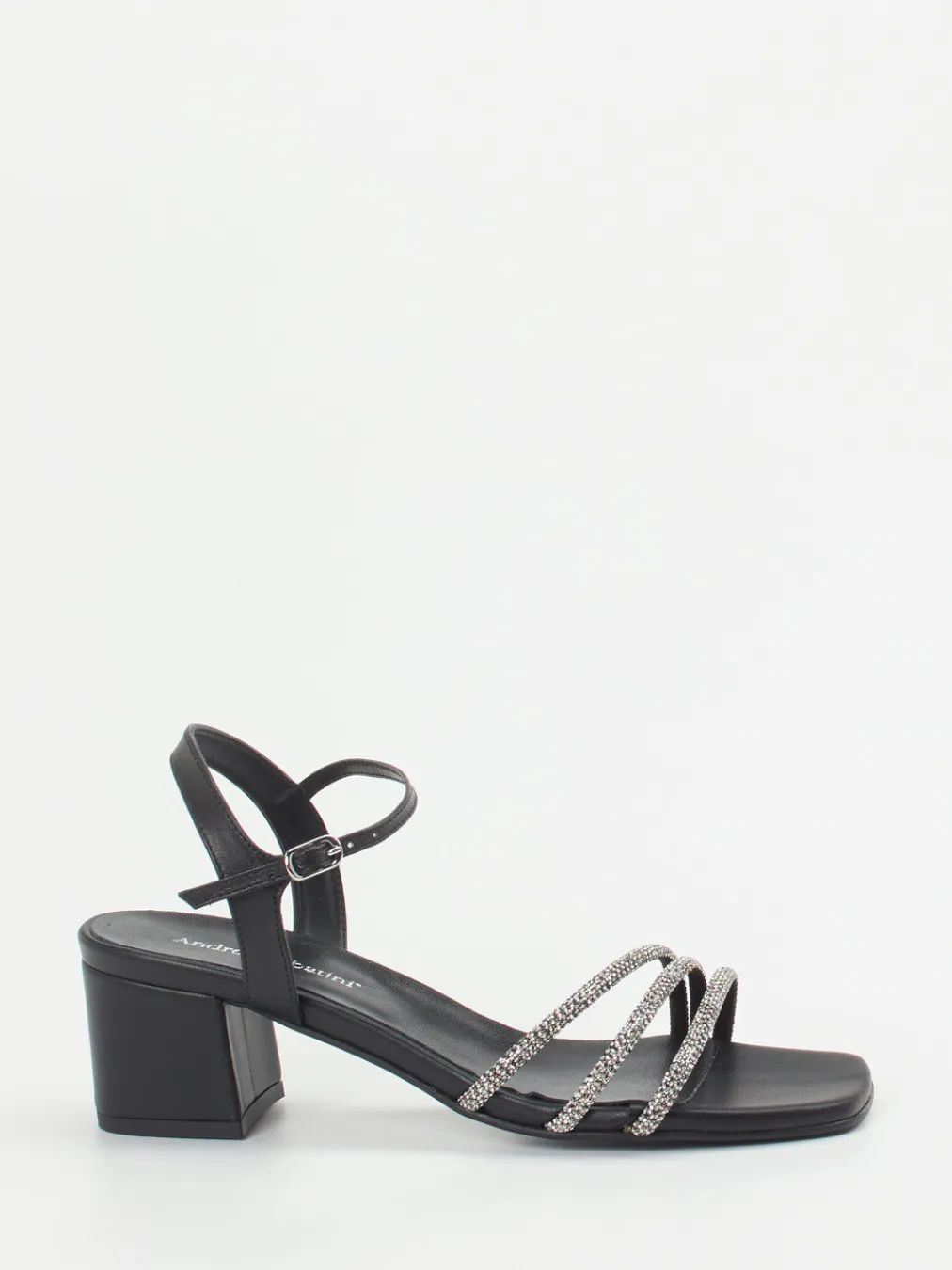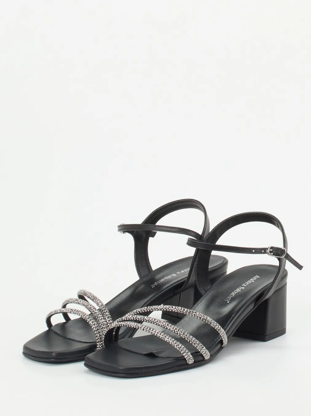Mit funkelnden Strassriemen und modernem Square-Toe-Design vereint diese Sandalette eleganten Look mit stabilem Komfort.