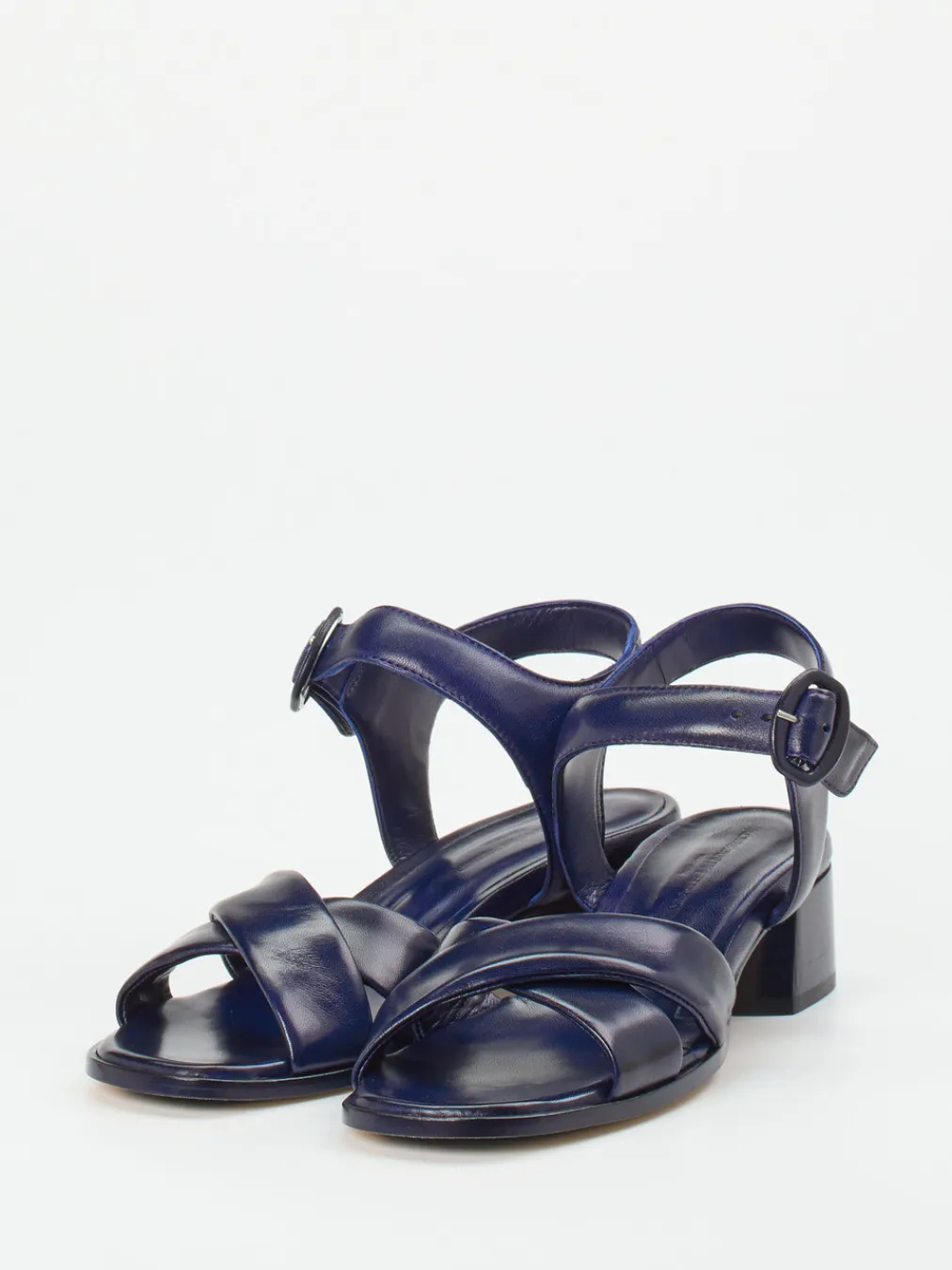 Für Tage, an denen ein femininer Look ebenso gefragt ist wie Tragekomfort, überzeugt das Modell durch weiches Lammleder mit edlem Glanz. Die überkreuzten Riemen und der individuell verstellbare Knöchelriemen fügen sich harmonisch in das minimalistische Design. Ein stabiler Blockabsatz mit 3,5 cm Laufhöhe sowie die gepolsterte Innensohle garantieren angenehmes Gehen – auch bei langem Einsatz. In tiefem Tintenblau gehalten, passen die offen gehaltenen Schuhe ideal zum Quiet Luxury Trend. Besonders gut kombinierbar mit fließenden Stoffen oder Ton-in-Ton-Accessoires.