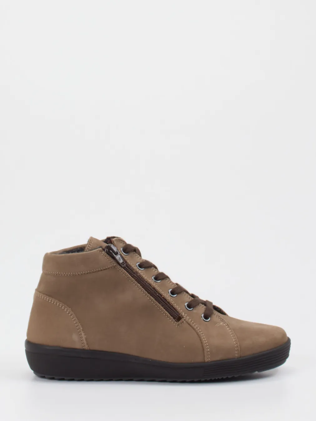 Hochwertiges Nubukleder, ein weiches Wollfutter und ein seitlicher Reißverschluss vereinen sich zu einem funktionalen Komfortschuh für kalte Tage.