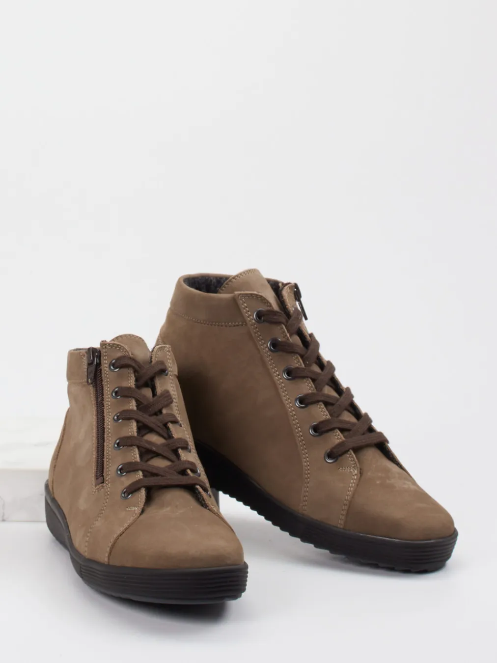 Wärmender Komfort für entspannte Herbsttage.Die Marke Christian Dietz präsentiert komfortable Damen-Schnürboots mit Fokus auf Funktion und Design. Ideal für den Alltag in der kühlen Jahreszeit: Diese mittelbraunen Schnürboots aus samtig angeschliffenem Nubukleder bieten mit ihrem kuscheligen Wollfutter angenehme Wärme und ein Höchstmaß an Bequemlichkeit. Die knöchelhohe Silhouette mit abgerundeter Form, praktischem Reißverschluss und Ton-in-Ton-Nähten unterstreicht den minimalistischen Look. Die rutschfeste Gummisohle mit 2 cm Keilabsatz sorgt für Trittsicherheit, während das lose Korkfußbett individuell anpassbar ist. Optimal für entspannte Casual-Outfits im urbanen Stil. Ein durchdachtes Design für stilbewusste Komfort-Liebhaberinnen.