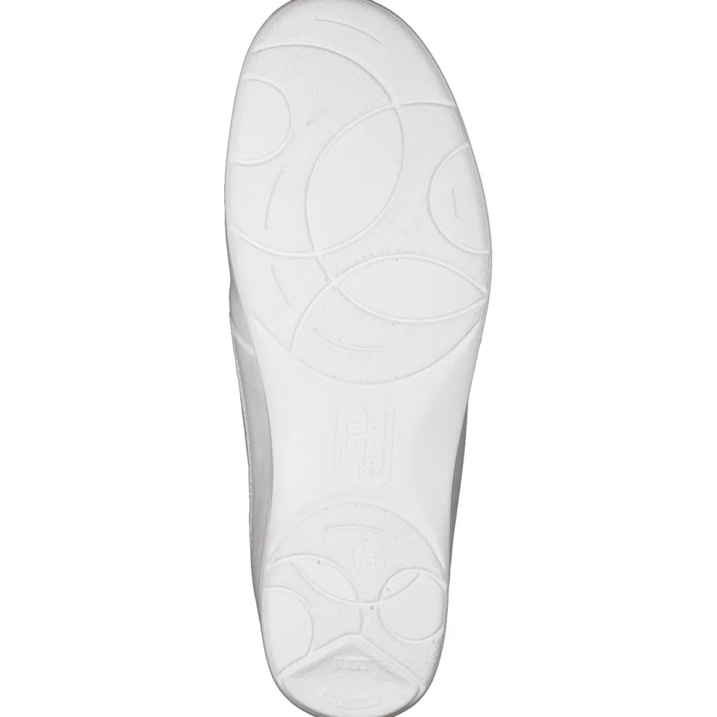 Frischer Komfort für jeden Schritt.Finn Comfort präsentiert mit diesem Damen-Komfortsneaker eine gelungene Kombination aus Funktion und Leichtigkeit. Ideal für entspannte Tage in der Stadt oder beim Spazieren setzt das Modell auf hochwertiges weißes Kalbleder, ergänzt durch tonige Meshtextilien mit perforierten Einsätzen. Die klassisch-runde Form mit Schnürverschluss sorgt für eine individuelle Passform, während das herausnehmbare, lederbezogene Korkfußbett und die stoßdämpfende Gummisohle langanhaltenden Tragekomfort bieten. Dezente Metallic-Details und eine verstärkte Ferse unterstreichen das minimalistische Design. Der Look harmoniert besonders gut mit hellen Freizeitoutfits. Maximaler Gehkomfort trifft bei Finn Comfort auf stilvolle Alltagstauglichkeit.