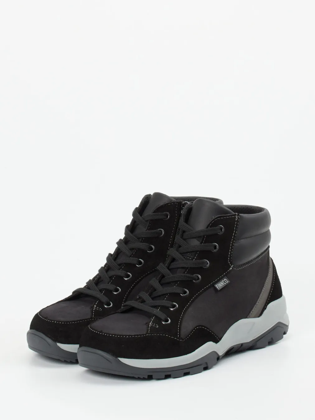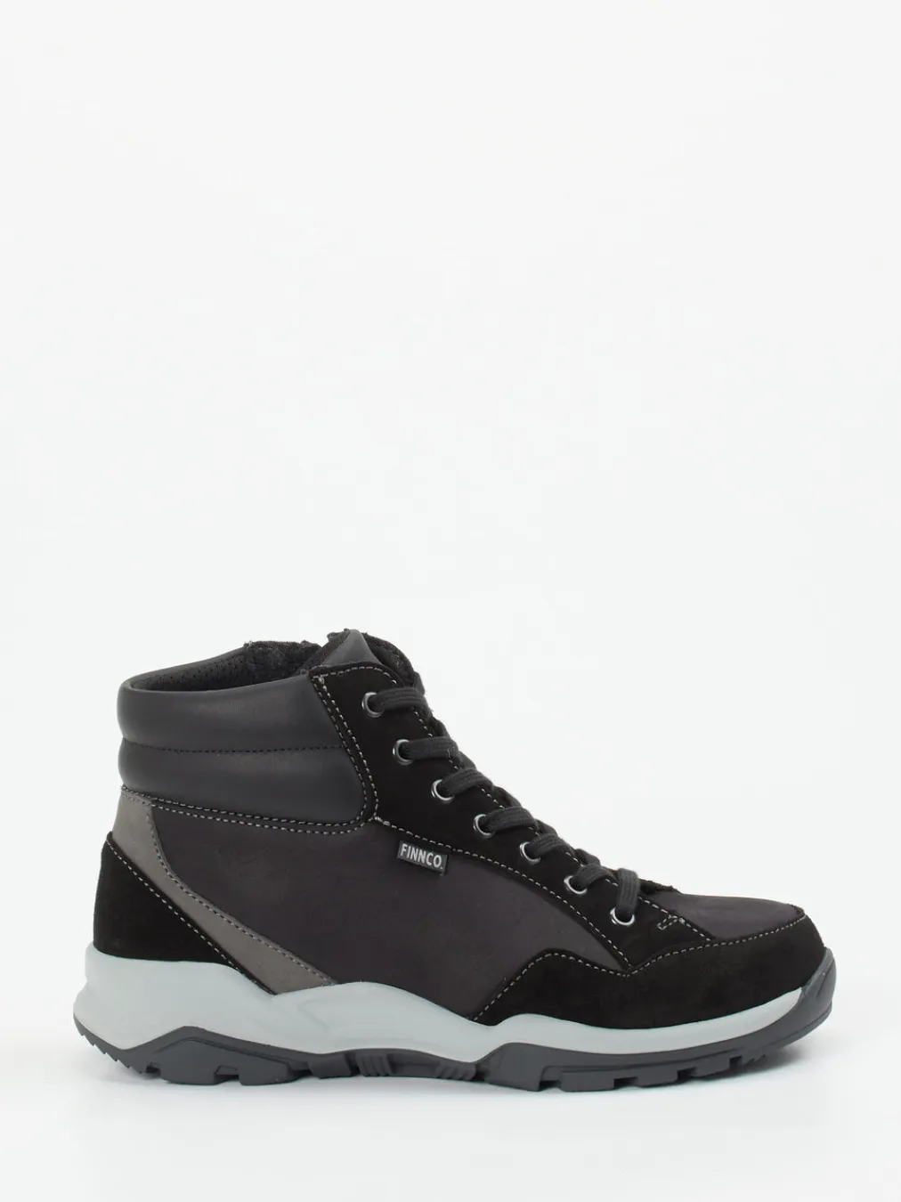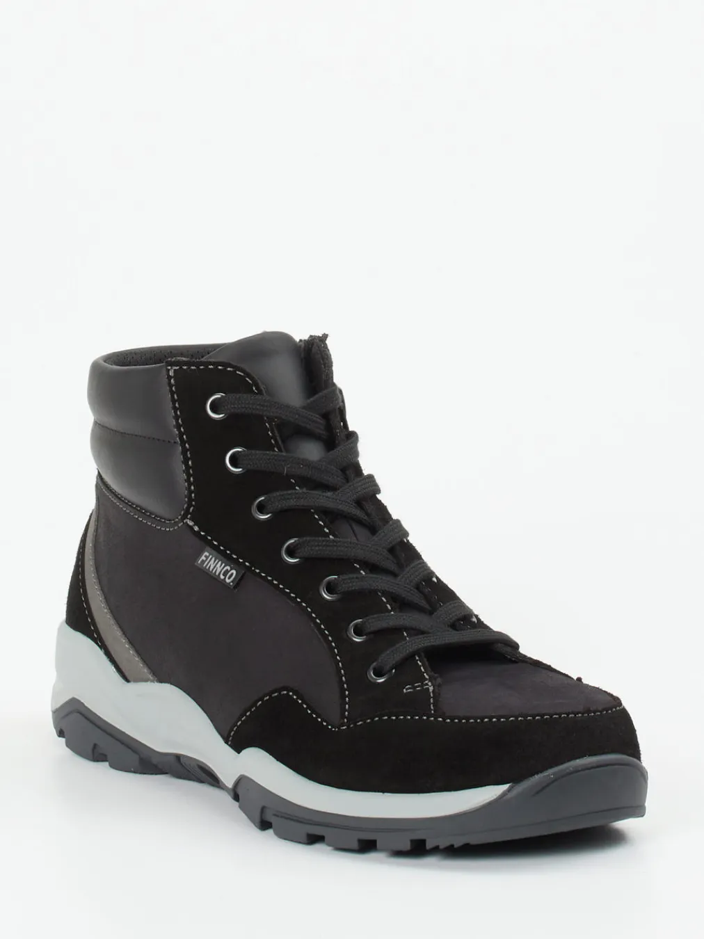 Für aktiven Komfort bei jedem Wetter.Finn Comfort präsentiert mit dieser Schnürstiefelette ein knöchelhohes Modell für Outdoor und Alltag. Das robuste Nubukleder wird an ausgewählten Partien durch samtig-mattes Veloursleder ergänzt – kombiniert mit Textilfutter, synthetischen Besätzen und Kontrastnähten entsteht ein moderner Utility-Look in Tiefschwarz. Der gepolsterte Schaft und ein seitlicher Reißverschluss bieten Komfort beim Tragen und Anziehen. Die profilierte Gummisohle mit Shock Absorber sorgt für Halt auf wechselndem Terrain, ein herausnehmbares Korkfußbett ermöglicht individuelle Anpassung. Inspiriert von Gorpcore und Streetstyle, harmoniert der Look mit Freizeitjacke und Funktionshose. Ein funktionaler Wohlfühlschuh mit hochwertiger Ausstattung von Finn Comfort.