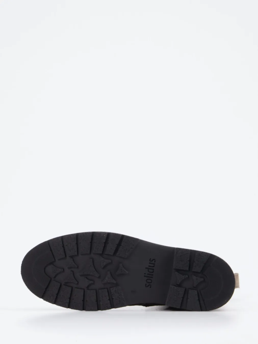 Solidus präsentiert eine komfortorientierte Schnürstiefelette für Damen – gefertigt aus hochwertigem Veloursleder in steingrauem Farbton.