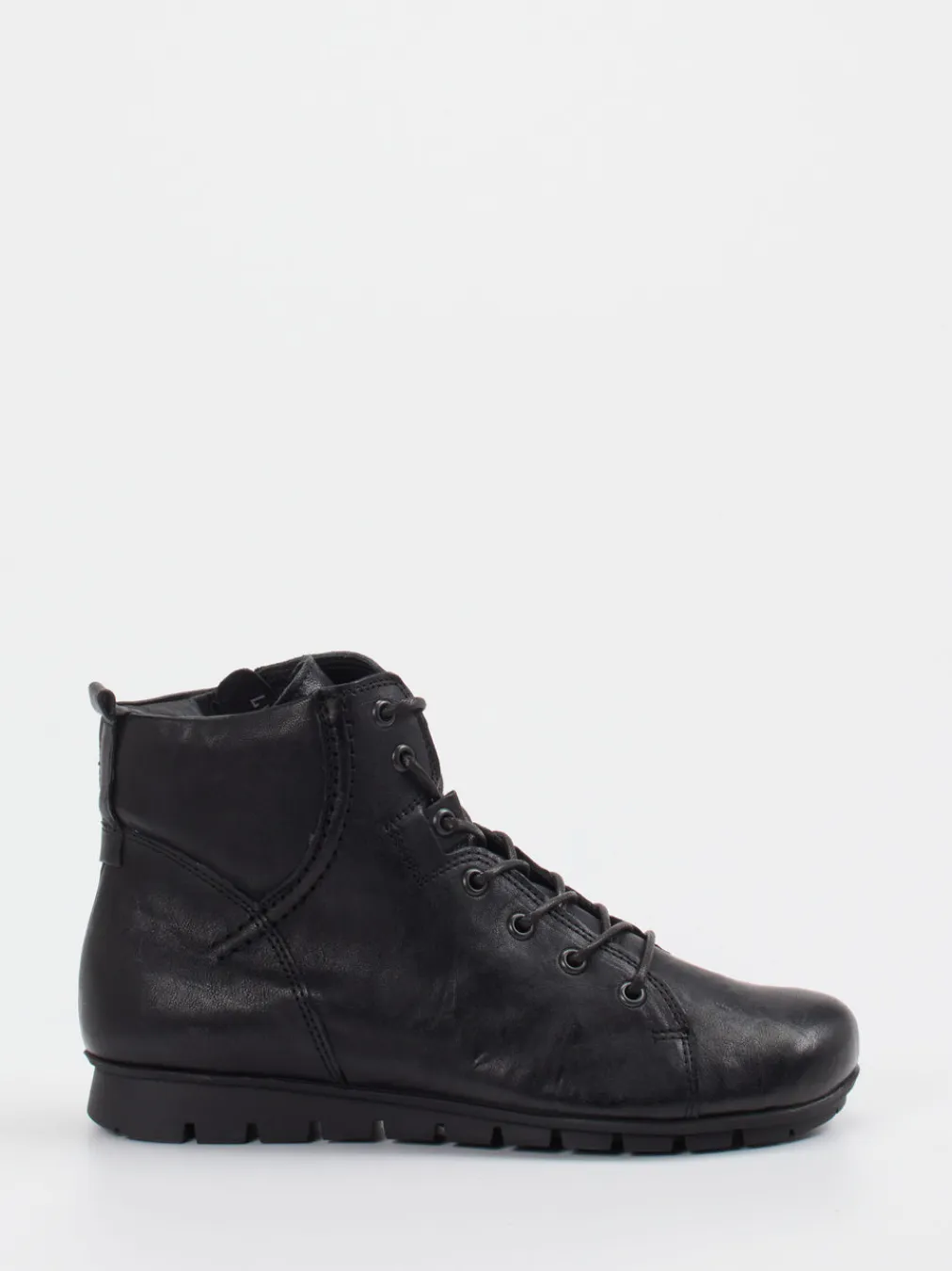 Diese komfortbetonte Schnürstiefelette aus weichem Ziegenleder kombiniert funktionale Ästhetik mit reduziertem Design. Ideal für urbane Herbsttage mit stilvollem Anspruch.