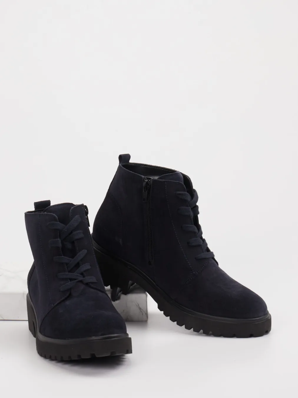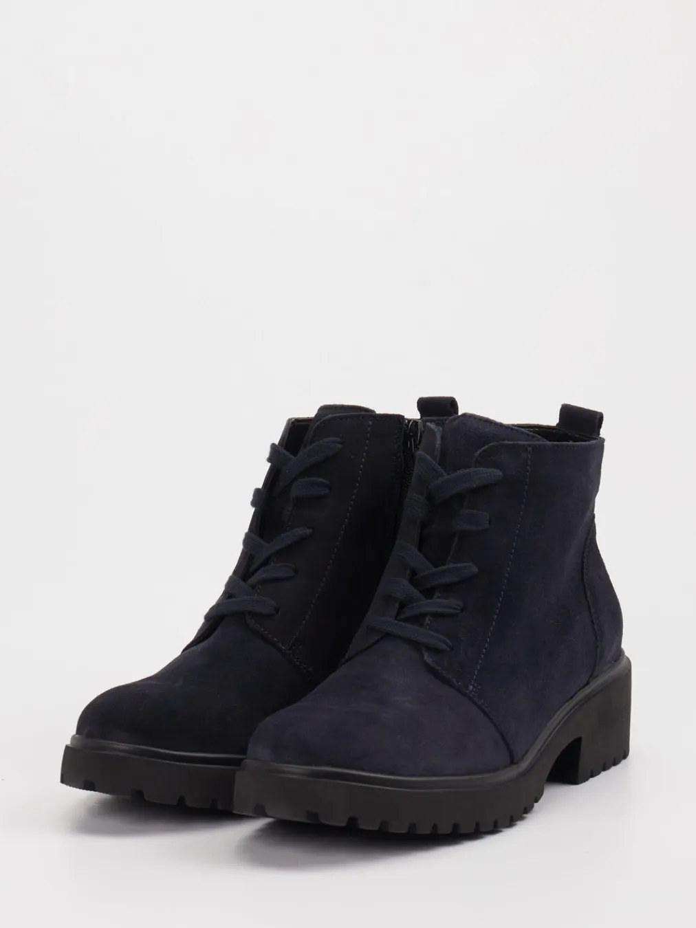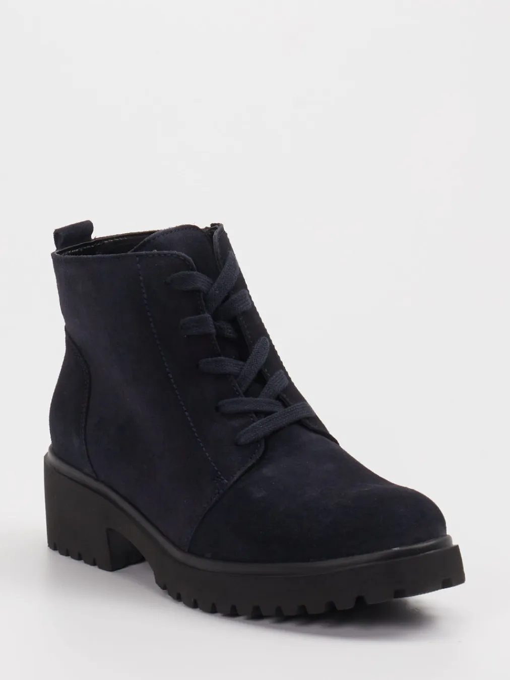 Funktionalität trifft auf saisonale Ästhetik. Waldläufer präsentiert mit dieser Damen-Stiefelette eine minimalistische Schnürstiefelette für urbane Freizeit- und Outdoorlooks. Das aus blauem Veloursleder gefertigte Modell besticht durch seine matte Oberfläche und den komfortorientierten knöchelhohen Schnitt. Der innenliegende Reißverschluss erleichtert das Anziehen zusätzlich zur klassischen Schnürung. Durch die profilierte Gummisohle und das warme Textilfutter eignet sich die Stiefelette ideal für kühlere Tage. Dank ihrer dunklen Farbgebung lässt sie sich vielseitig kombinieren – etwa zu Strick und Outdoorjacken. Perfekt für Komfortansprüche mit einem klaren, herbsttauglichen Designprofil.